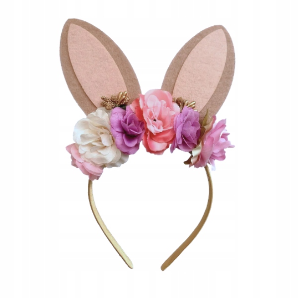 ⭐ Повязка на голову с кроличьими ушками! Красиво украшена цветами, которые украшают ее внешний вид.
