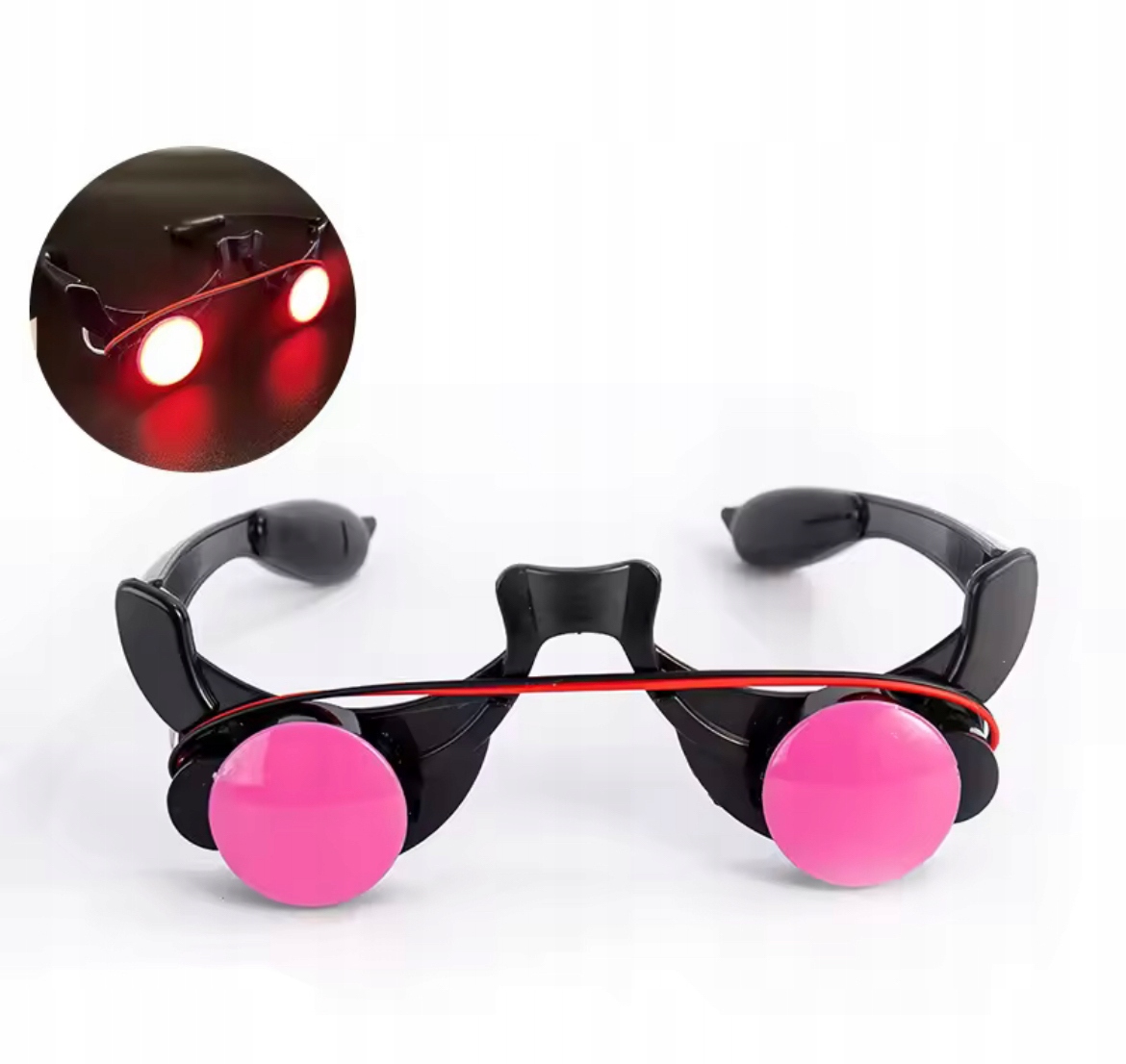 Светодиодные очки с розовыми очками легкие, удобные и идеально соответствуют лицом. Благодаря энергетическим светодиодам они излучают сильный розовый свет, который привлекает внимание и придает стилизации уникальный персонаж.