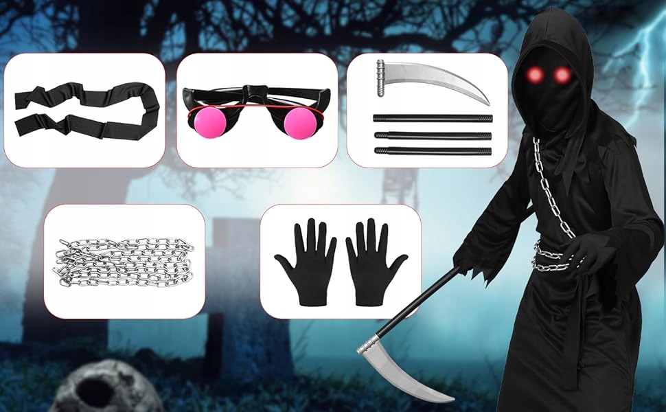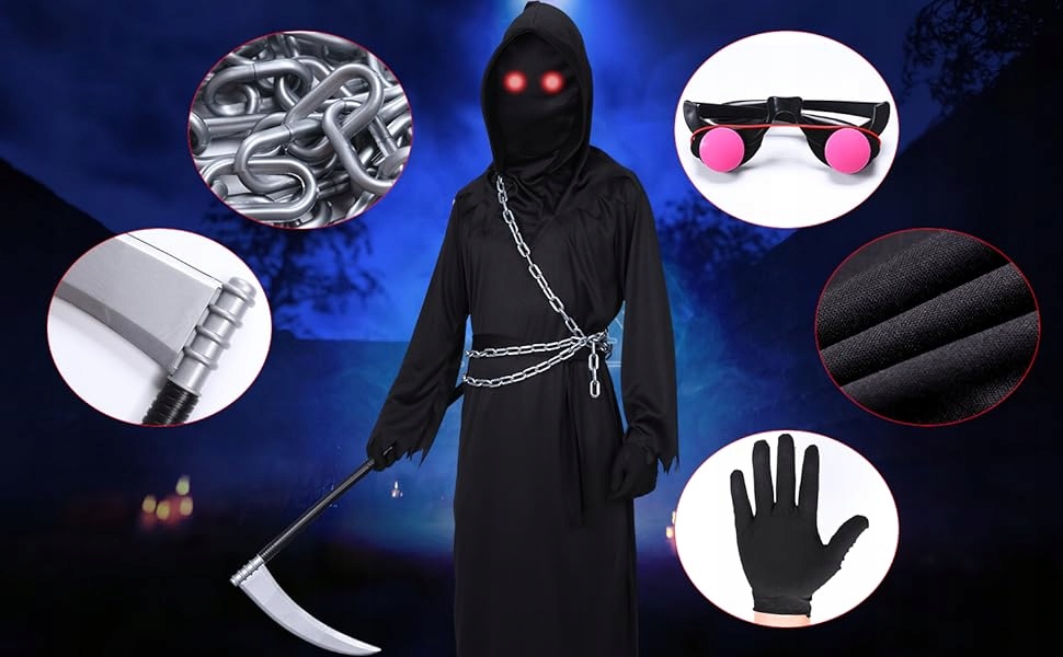 🎃 впечатляющий полный комплект для смерти Хэллоуина с косай, мрачный жнец - верно отражает темный характер персонажа.