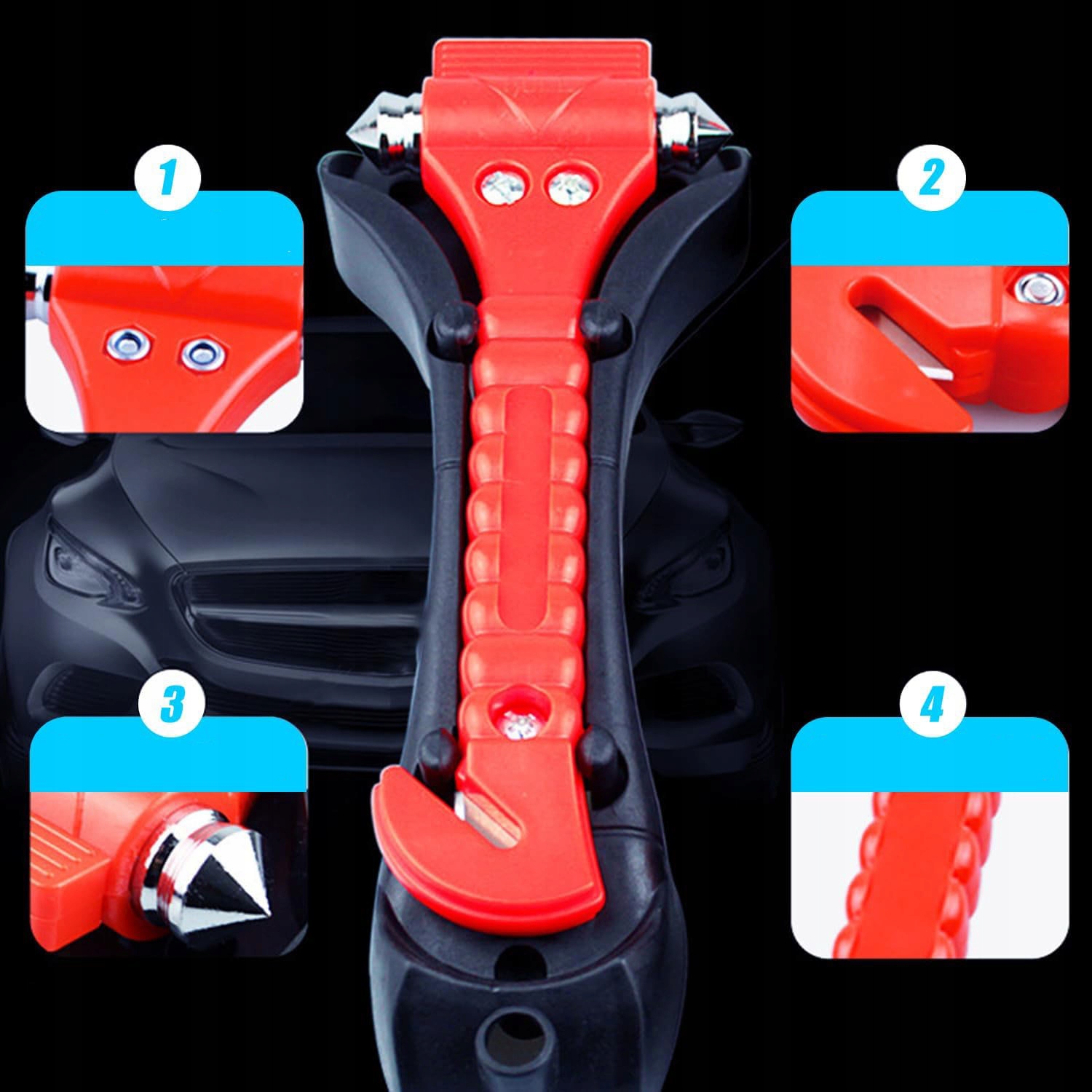NARZĘDZIE DO UCIECZKI, 4 SZTUKI DO SAMOCHODU,AWARYJNY MŁOTEK BEZPIECZEŃSTWA