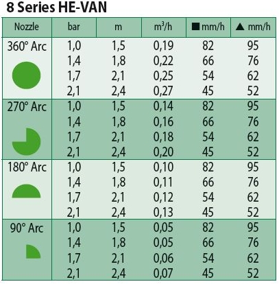 Эти форсунки идеально подходят для орошения зеленых участков с неправильной формой поверхности и кустарников благодаря простоте регулировки сектора орошения. ОСОБЕННОСТИ: Форсунки с цветовой маркировкой для облегчения идентификации радиуса и сектора.