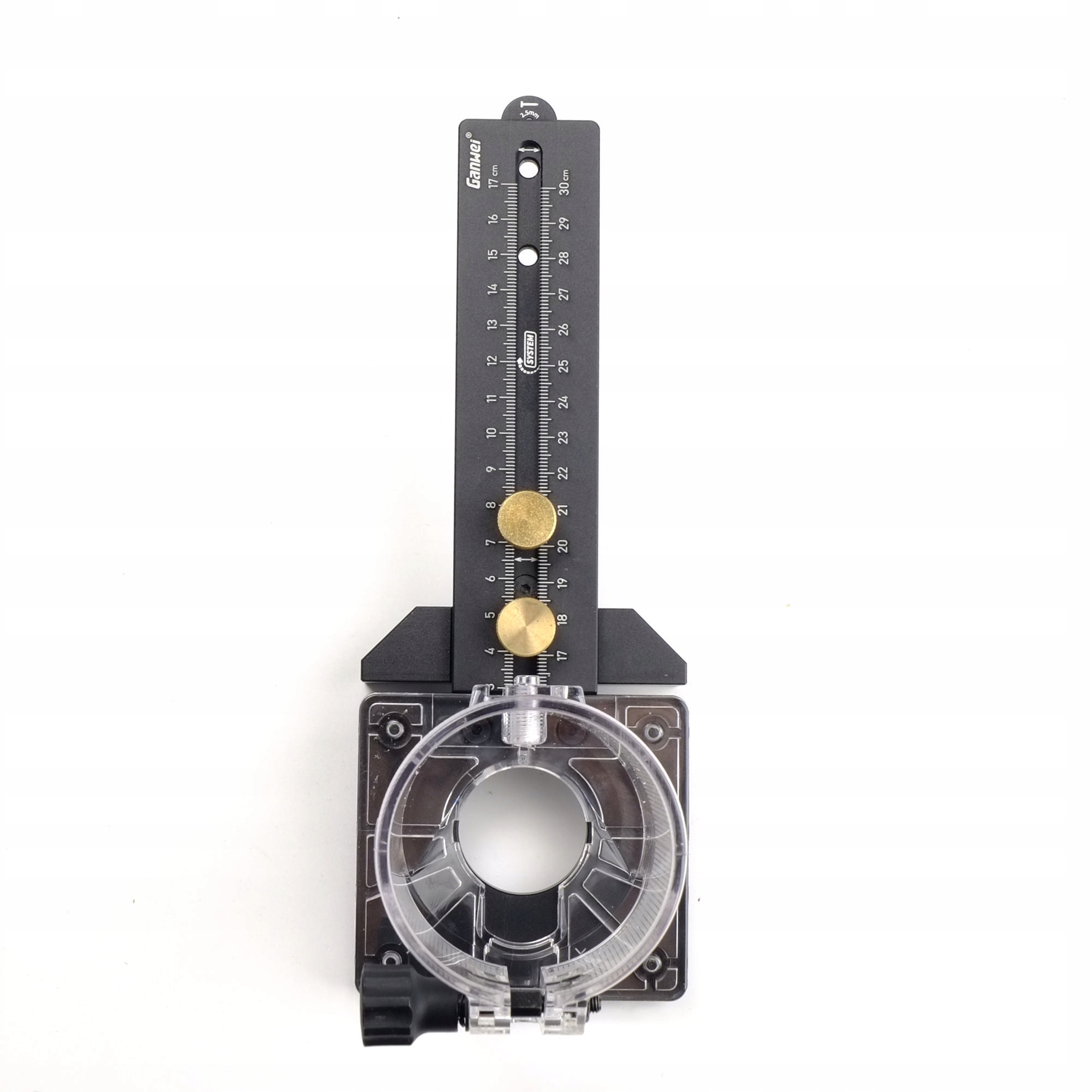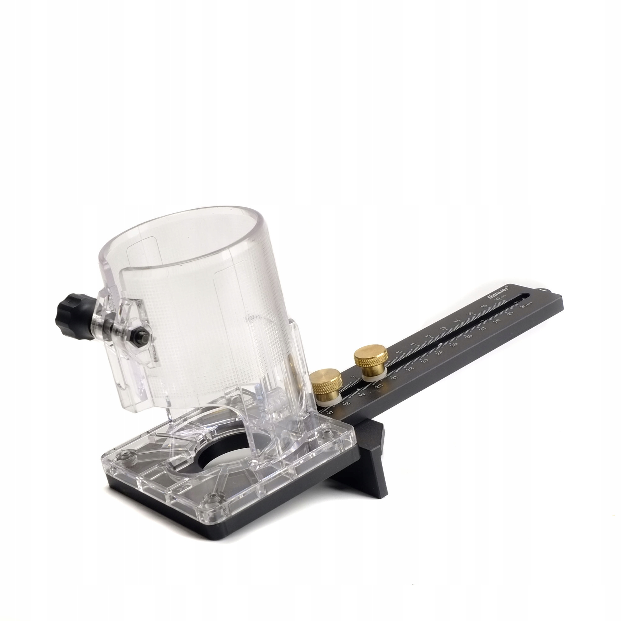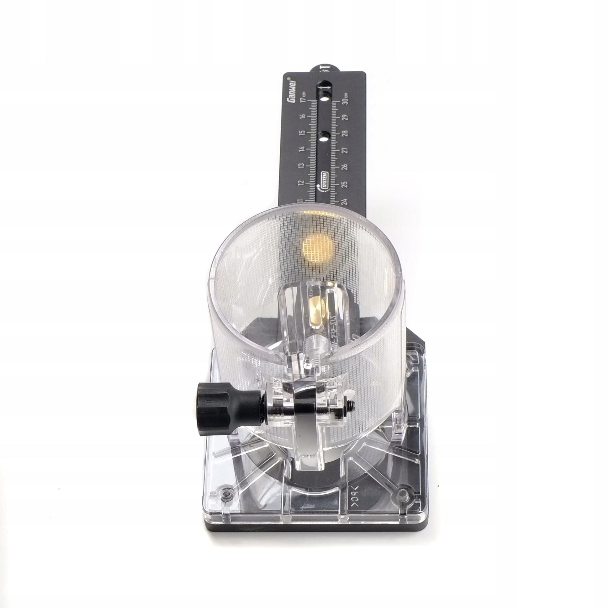 Точность и повторяемость обеспечиваются миллиметровой шкалой, нанесенной на крепежный рычаг. Фактический диаметр круга зависит от диаметра используемой фрезы.
