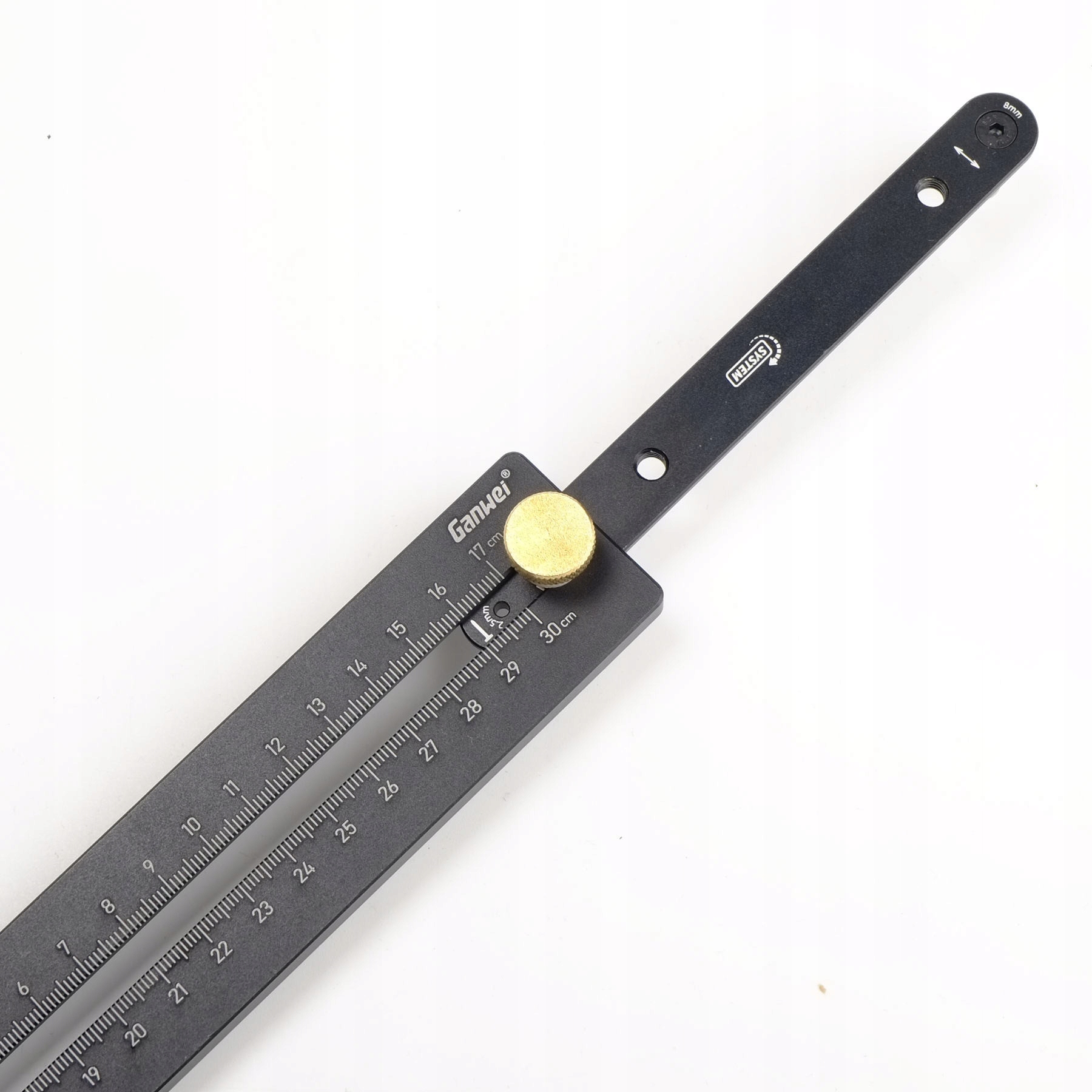 Латунный винт с нейлоновыми шайбами позволяет быстро зафиксировать рычаг циркуля в соответствующем положении.