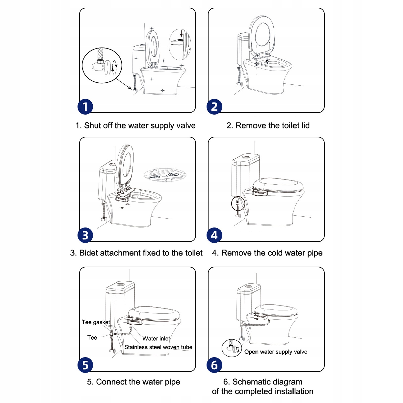 4. ПРЕМИУМ МАТЕРИАЛ: Наше крепление для сиденья унитаза изготовлено из клапанов высшего качества и металлического шланга вместо пластика, а также Т-образных клапанов и впускных отверстий для обеспечения длительного срока службы.