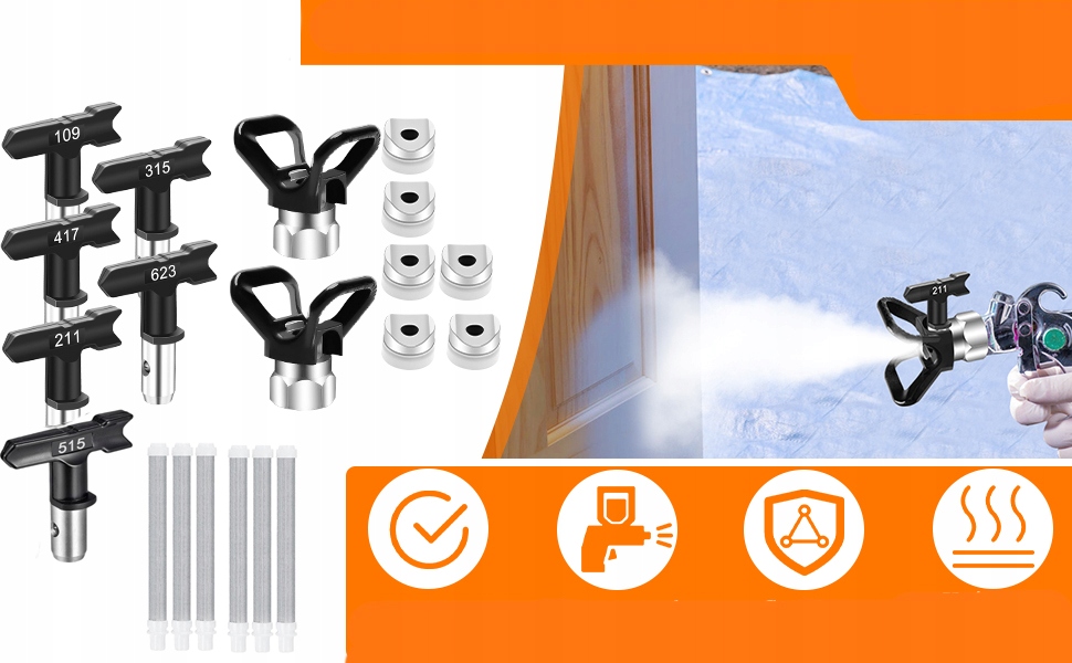 ✅- Доступно 6 моделей безвоздушных распылителей (модель 109/211/315/417/515/623) и совместимо с большинством безвоздушных распылителей.