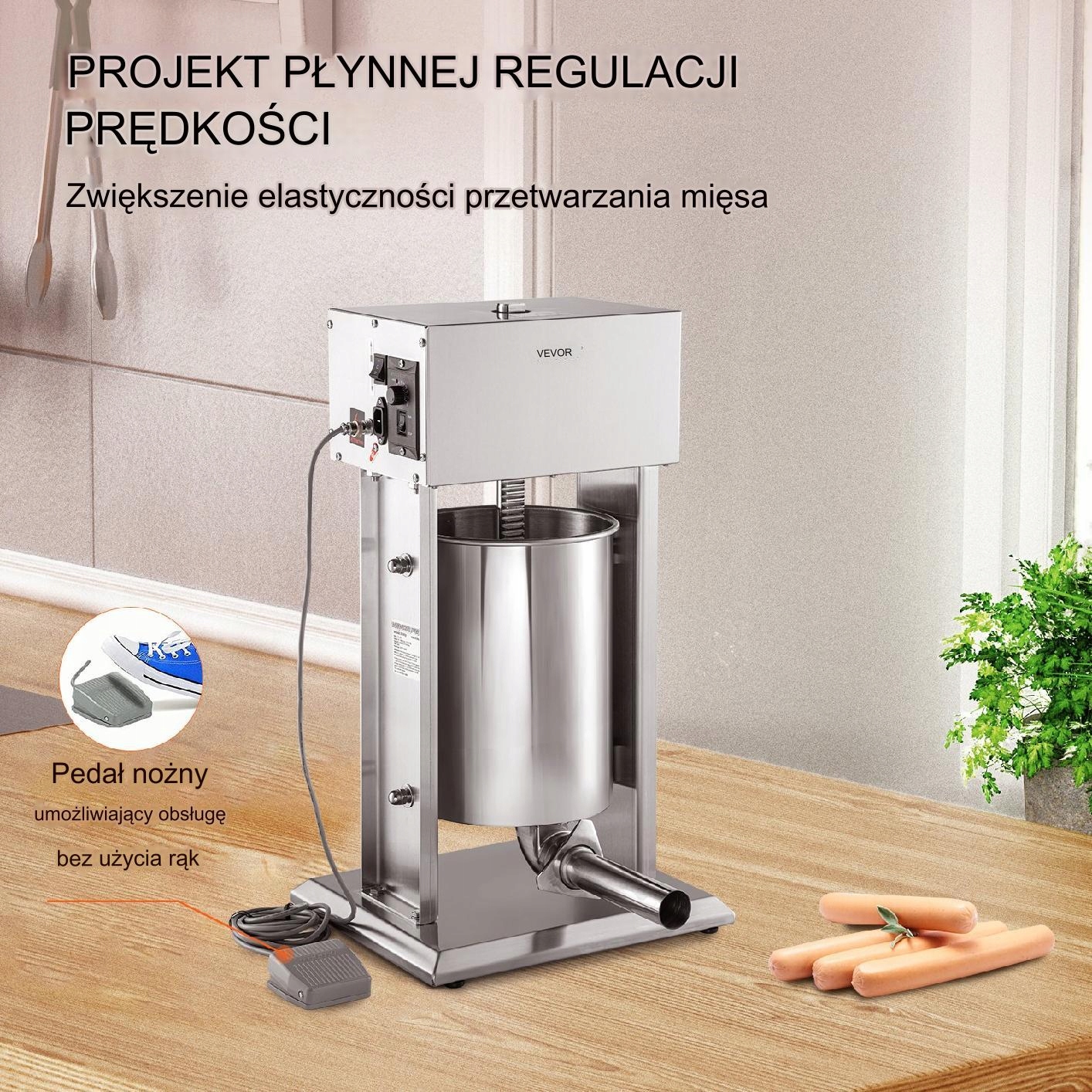 Бесступенчатая регулировка скорости этой вертикальной мясорубки позволяет адаптировать процесс к вашим потребностям. Оснащенный ножным переключателем, он позволяет быстро завершить работу без необходимости ручного управления, а это означает, что вы можете производить колбасы еще быстрее.