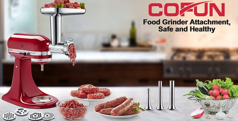 Насадка для мясорубки COFUN для кухонных комбайнов KitchenAid с 4 измельчающими дисками и 3 насадками для начинки колбас