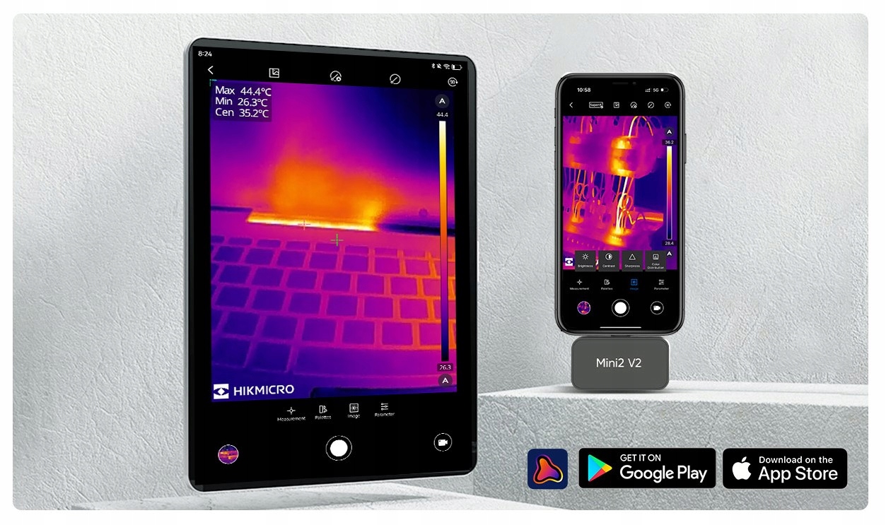 HIKMICRO Mini2 V2 — современная тепловизионная камера USB-C, предназначенная для смартфонов с ОС Android. Прибор отличается компактным дизайном и впечатляющим разрешением термодатчика 256×192 пикселей, что позволяет точно определять разницу температур даже на небольших участках. Благодаря высокой тепловой чувствительности (< 40 мК) камера позволяет наблюдать незначительные температурные различия, что особенно полезно при технической и сервисной диагностике. Mini2 V2 имеет прочный корпус из алюминия, что обеспечивает устойчивость к падениям и повседневное использование в сложных условиях. После подключения к телефону устройство автоматически работает со специальным приложением HIKMICRO Viewer, предлагая различные цветовые режимы, точечные измерения, запись тепловых изображений и видео, а также экспорт данных. Он не требует внешнего питания — он черпает энергию непосредственно из смартфона, что делает его чрезвычайно мобильным инструментом. Камера доступна в трех вариантах упаковки: стандартная (с чехлом и адаптером), профессиональная (с программным обеспечением для анализа и дополнительными аксессуарами) и сервисная (с чемоданом, штативом и магнитным держателем). Каждый набор адаптирован к различным потребностям — от домашнего осмотра до расширенной диагностики установки.