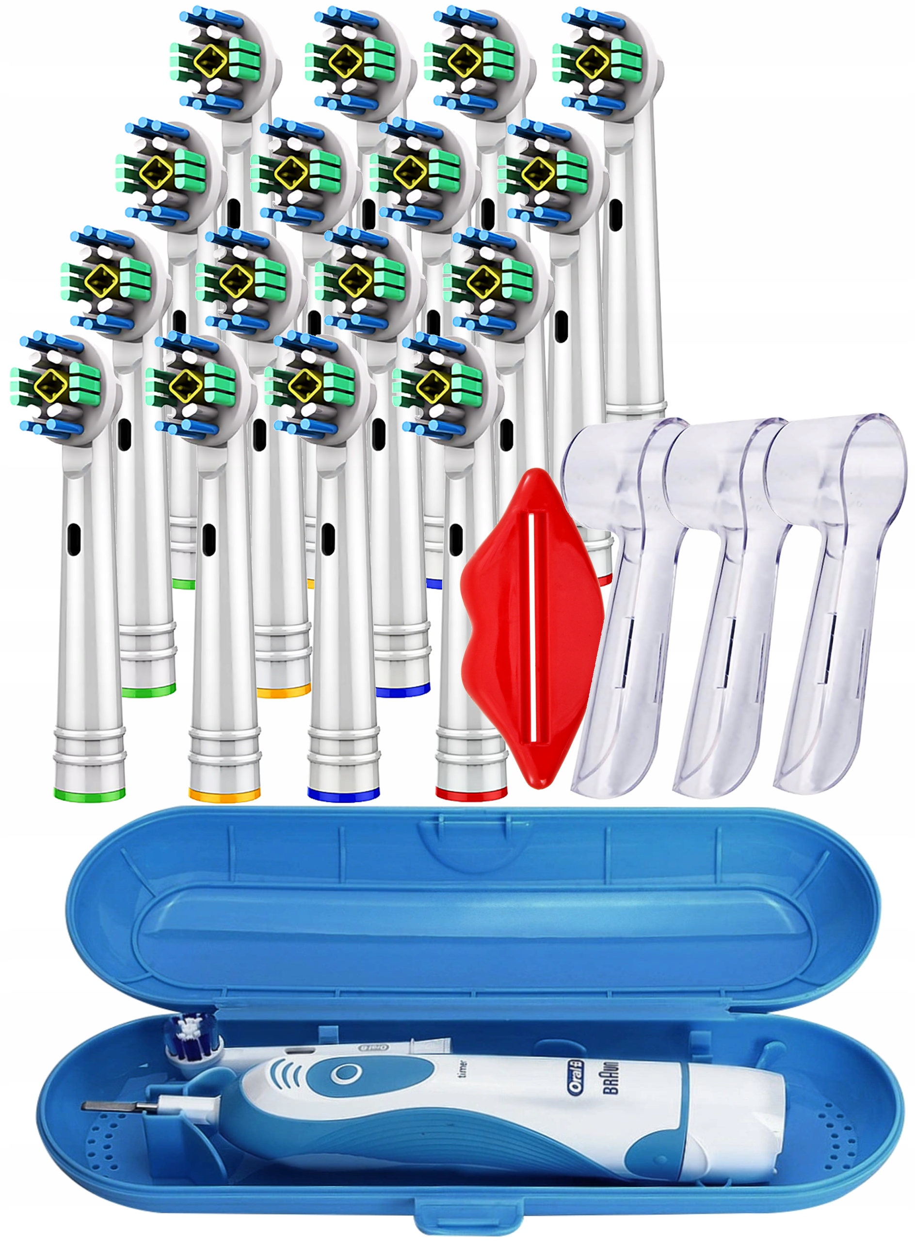 СМЕННЫЕ НАГОЛОВКИ 16 шт., ДЛЯ ЗУБНОЙ ЩЕТКИ ORAL-B, футляр для зубной щетки, 3 крышки и 1 тюбик-выжиматель