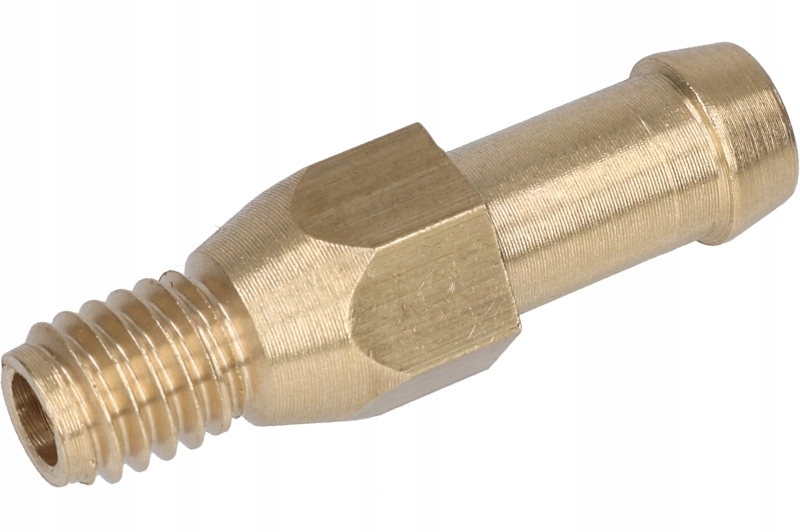 Насадка во всасывающий коллектор латунная с резьбой М6, для резинового газового шланга диаметром 6 миллиметров, длина 28 миллиметров. Используется для газовых форсунок ACW03.