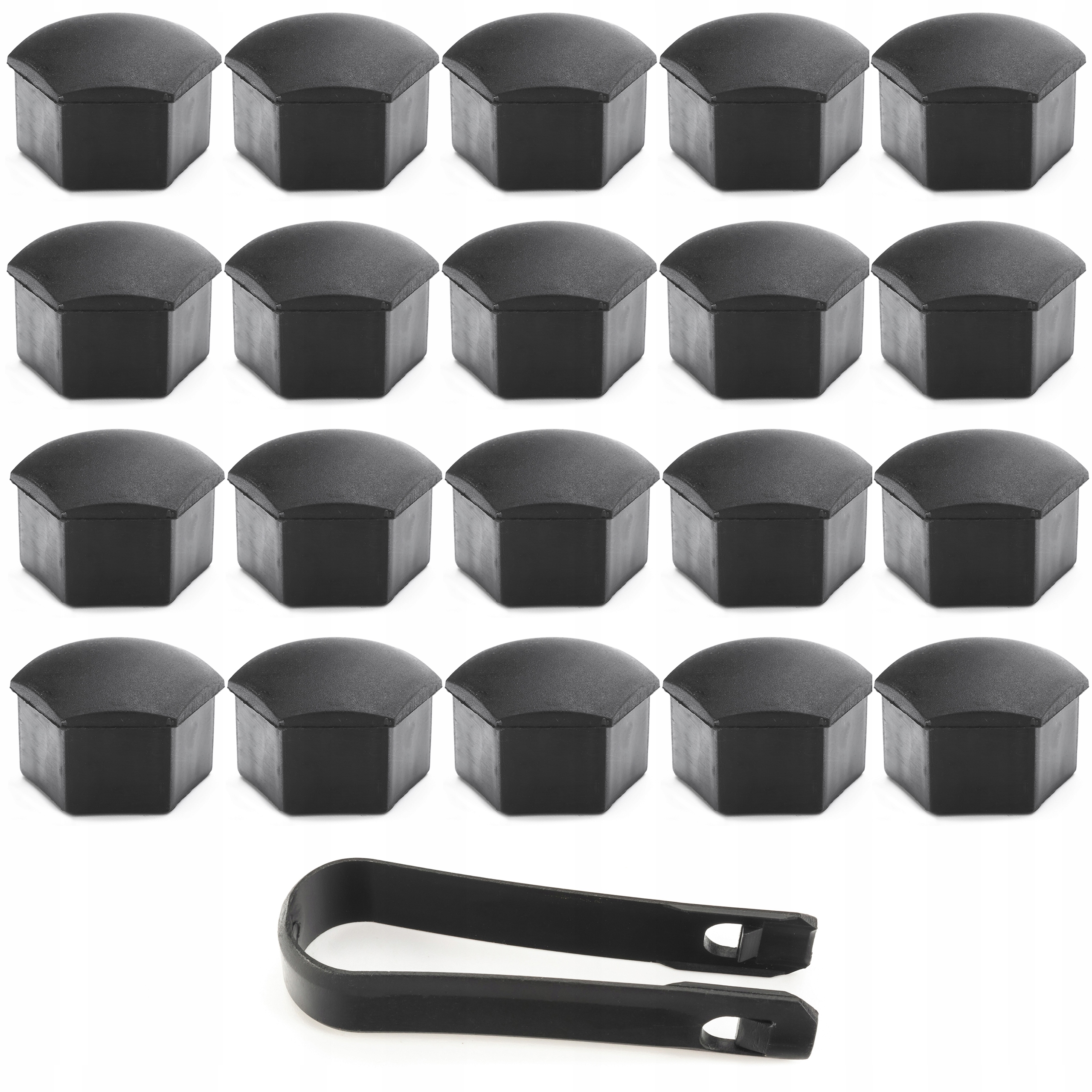 NASADKI NAKŁADKI OSŁONKI NA ŚRUBY KÓŁ FELG 21 mm CZARNY MAT ZESTAW