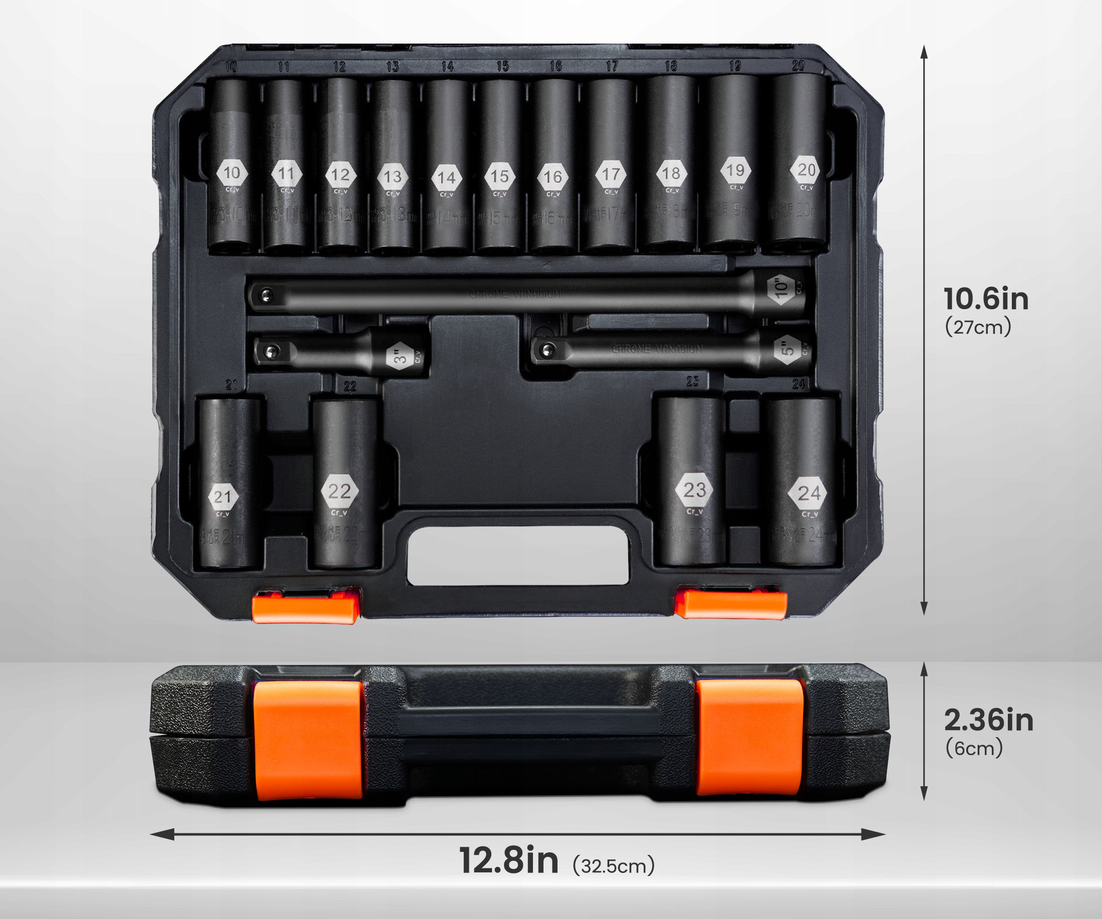 <ул>Прочный материал: изготовлен из хромованадиевой (Cr-V) стали, устойчивой к деформации, и имеет высококачественную структуру, обеспечивающую прочность. Гнезда также покрыты фосфатом марганца для придания прочности и белка.