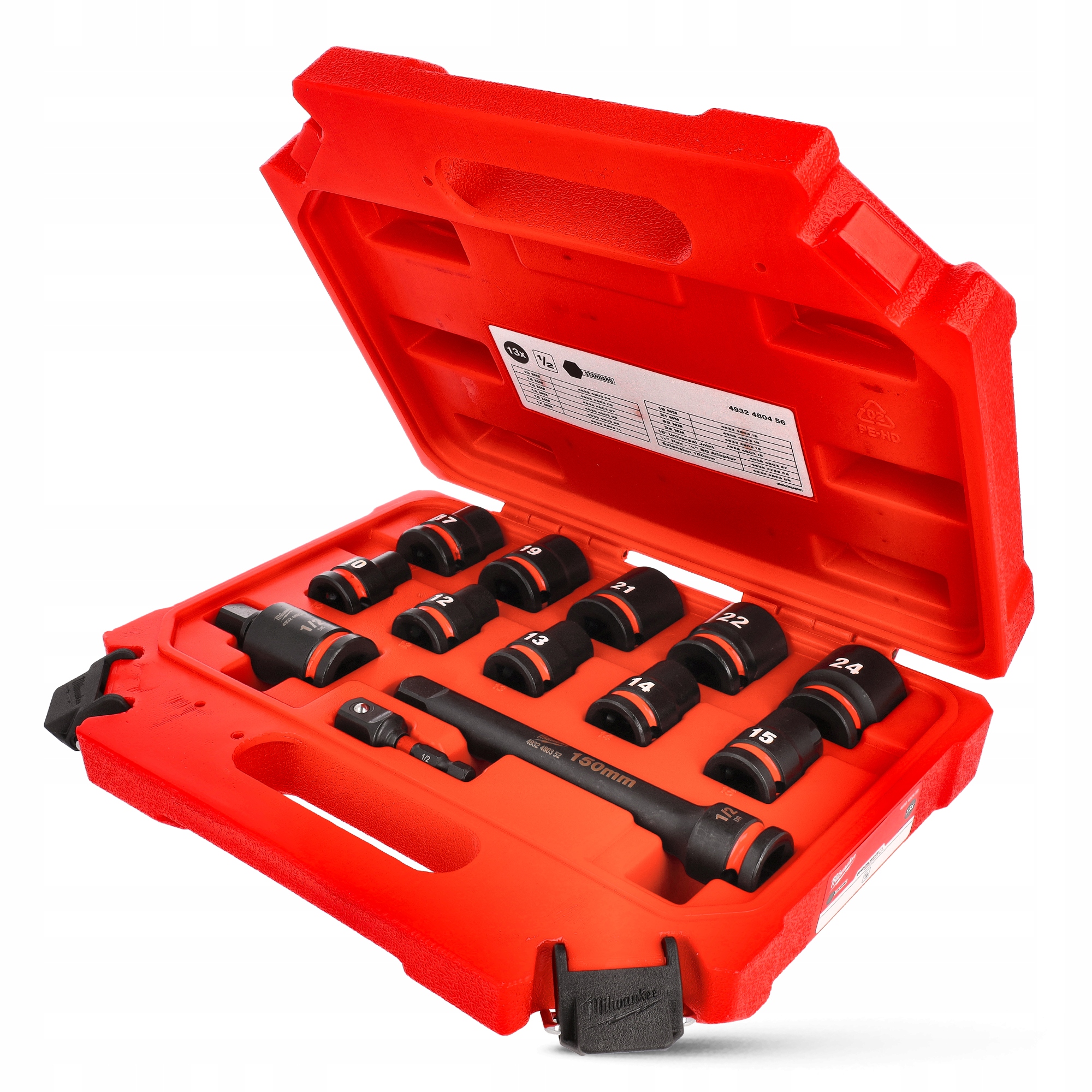 Ударные головки 1/2 дюйма, шестигранник, короткий адаптер Milwaukee, 10–24 мм, набор из 13 шт.