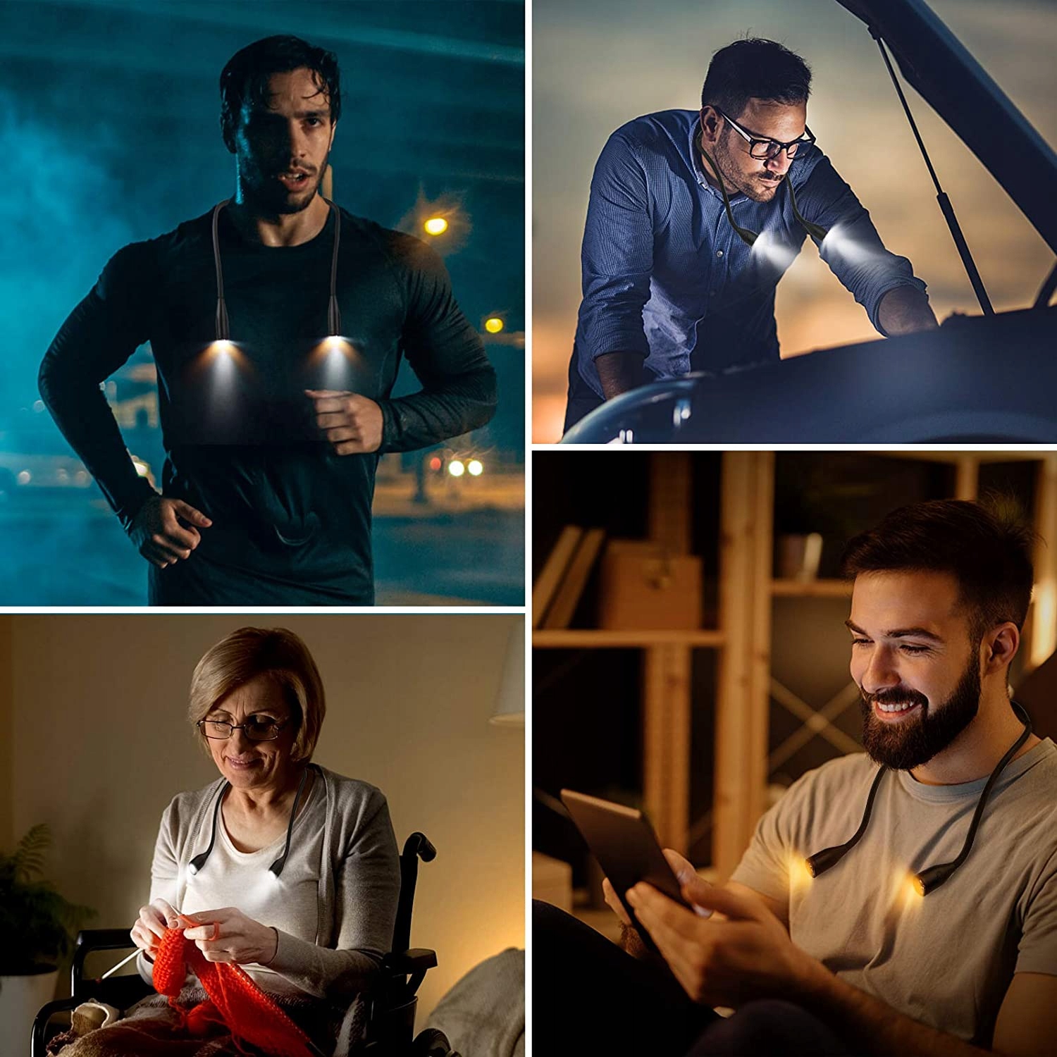 ?Гибкий светильник на шее? Эта светодиодная лампа имеет гибкий кронштейн, угол наклона которого легко выбрать в соответствии с различными потребностями в различных условиях, мягкий силикон, нетоксичен, безопасен в использовании и имеет высокое качество. Его можно носить на шее, чтобы освободить руки, это очень удобно и практично.