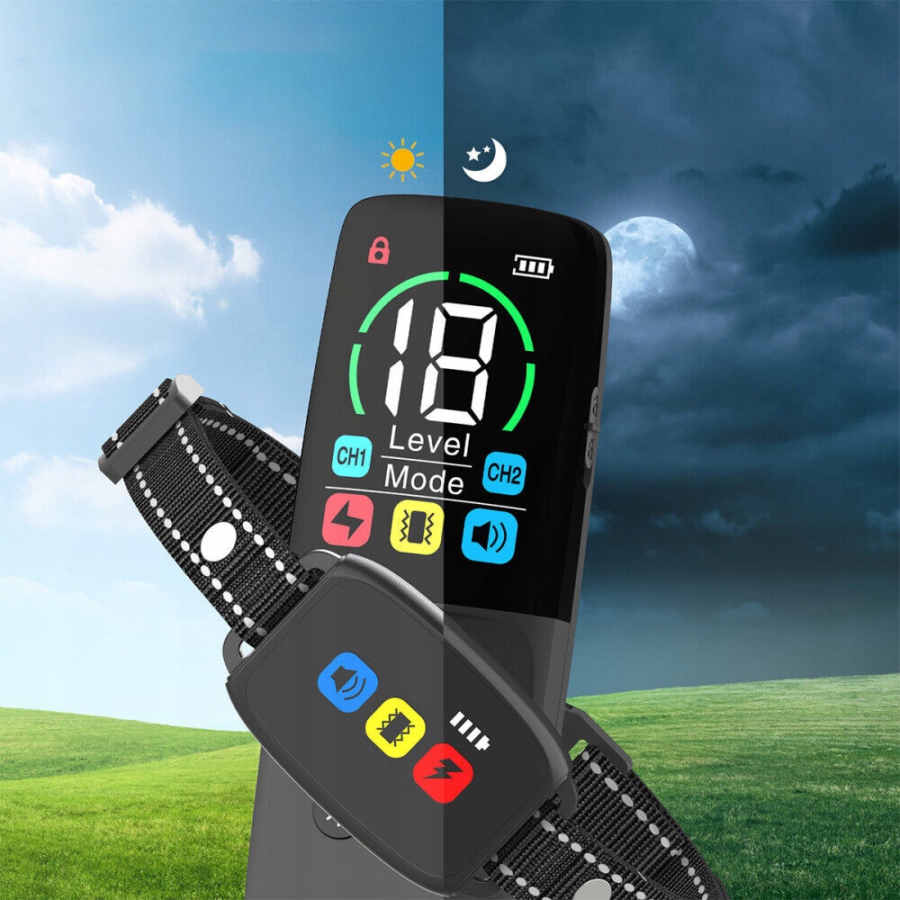 Ошейник для дрессировки собак с четкими значками — улучшает визуальную обратную связь во время дрессировки: Большой цветной ЖК-экран с четким и ярким изображением. На пульте дистанционного управления и на ошейнике отображаются одни и те же значки обучения. Когда пульт дистанционного управления отправляет команду дрессировки, на ошейнике загораются соответствующие значки дрессировки, обеспечивая более интуитивно понятное отображение состояния электрического ошейника и улучшая визуальную обратную связь во время тренировки.