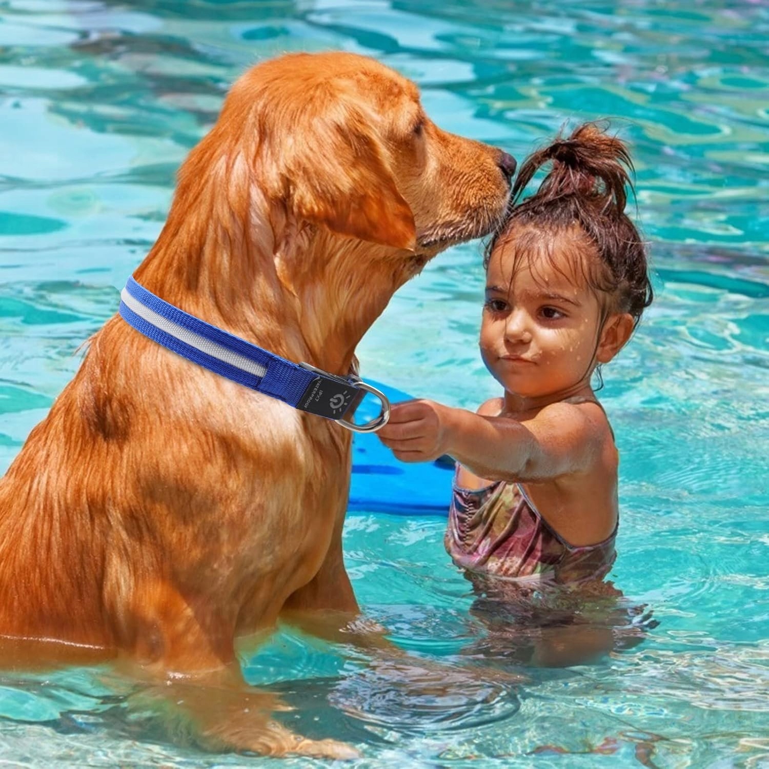 Ошейник для собак, СИНИЙ СВЕТОДИОД, СВЕТЯЩИЙСЯ, ВОДОНЕПРОНИЦАЕМЫЙ, ЗАРЯЖАЕМЫЙ ПО USB S КАБЕЛЮ