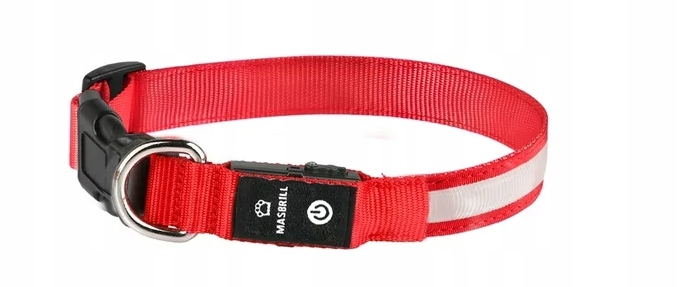 СВЕТОДИОДНЫЙ ОШЕЙНИК ДЛЯ СОБАК КРАСНЫЙ MASBRILL РАЗМЕР M РЕГУЛИРУЕМЫЙ