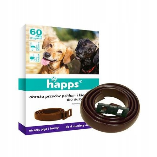Ошейник HAPPS для борьбы с блохами и клещами у собак. Обеспечивает эффективную защиту до 6 месяцев от блох и до 4 месяцев от клещей. Кроме того, он подавляет размножение блох, уничтожая их яйца и личинки. Ошейник не мешает обонянию и водонепроницаем, а удобная застежка позволяет регулировать его длину. Полная эффективность достигается в течение 24 часов.