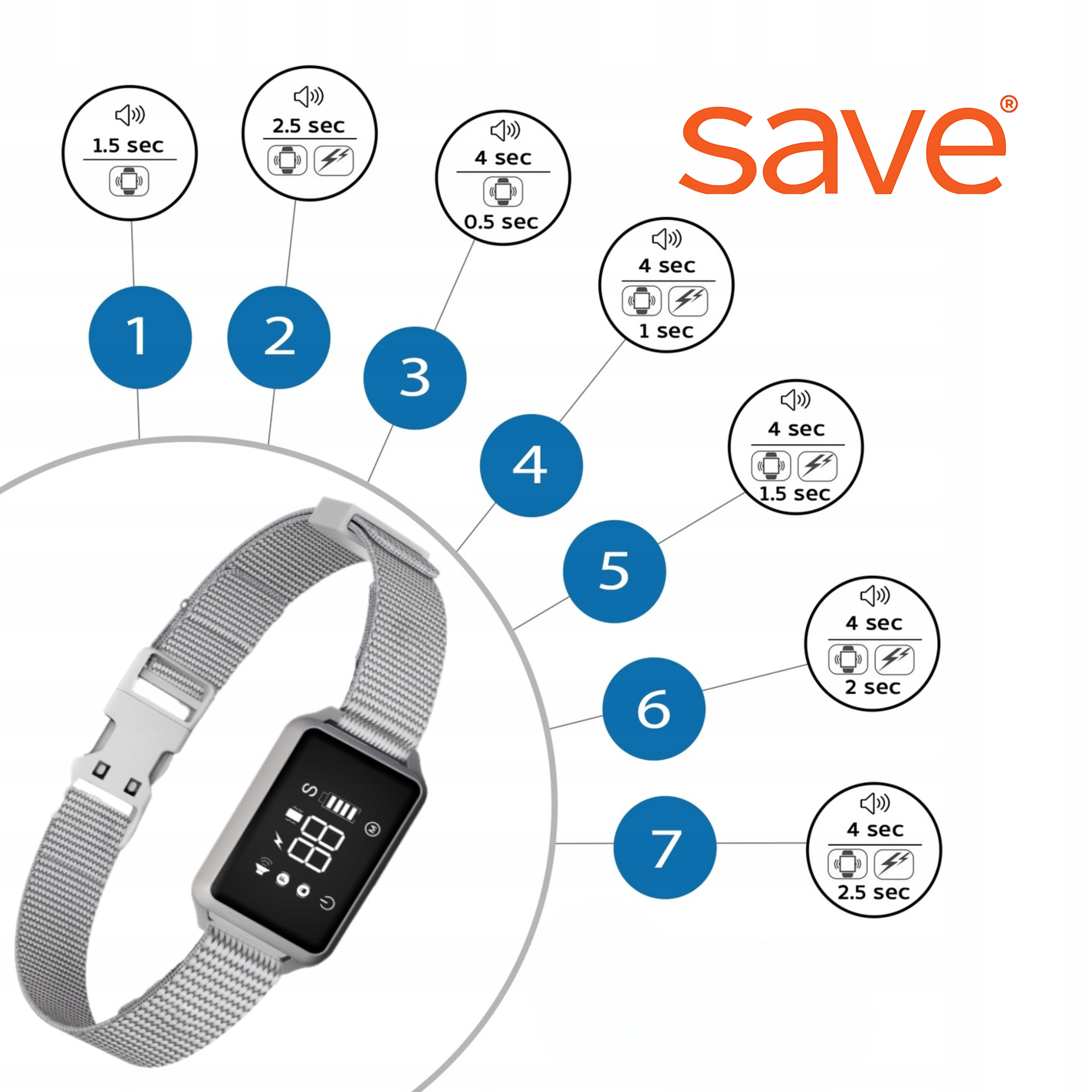 Ошейник имеет 7 степеней коррекции. После первого нежелательного поведения вашего питомца ошейник издаст звук определенной длины и в соответствии с выбранным режимом тренировки будет вибрировать или вибрировать и одновременно выдавать электростатический импульс.