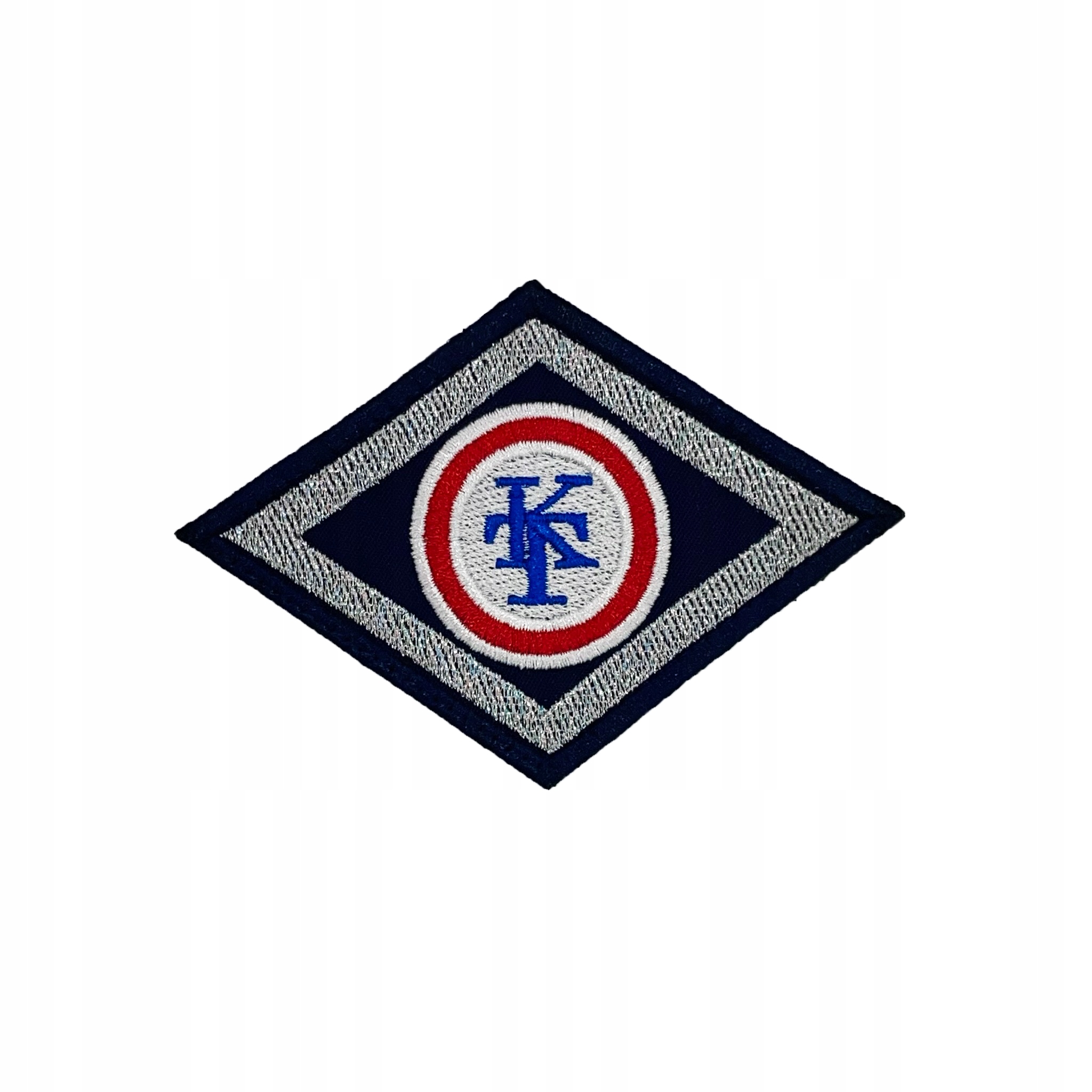 Эмблема, вышитая машинным способом на тканевой подложке темно-синего цвета, на липучке.