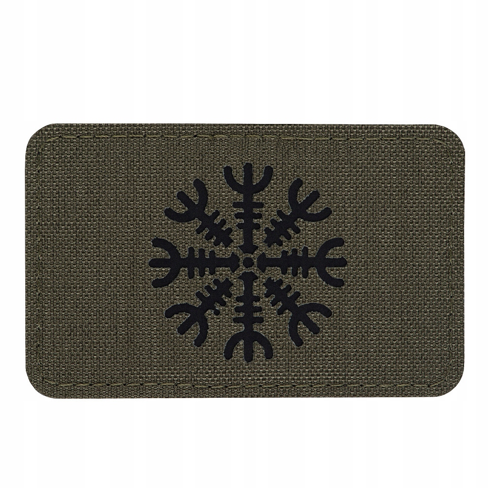 Нашивка M-Tac «Шлем ужаса», вырезанная лазером, с изображением Эгишьялмура. Шлем Ужаса — исландский магический символ, основанный на руническом письме, используемый для защиты от применения силы, вызывающей у врага чувство страха.