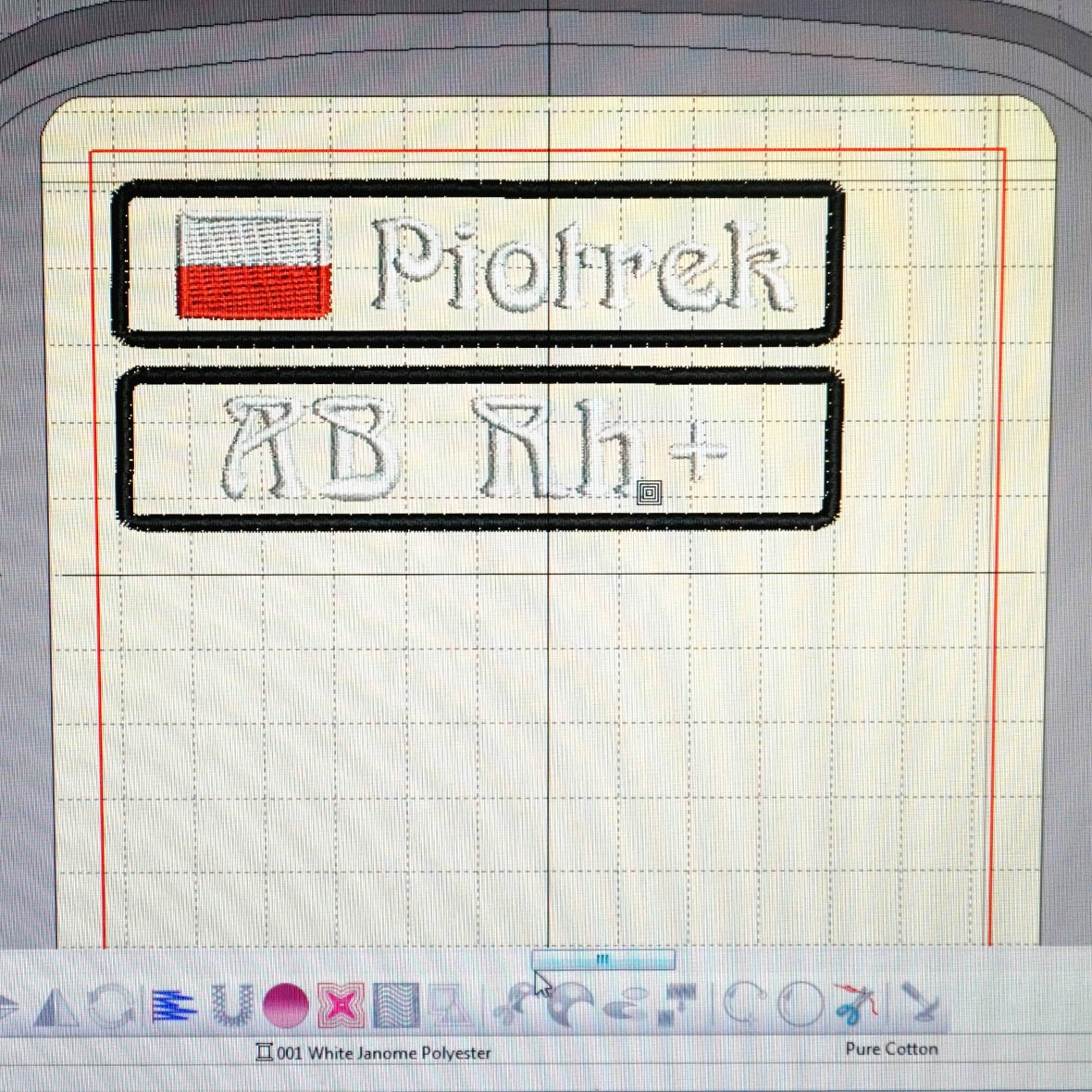 После покупки укажите цвет фона, нить и шрифт: