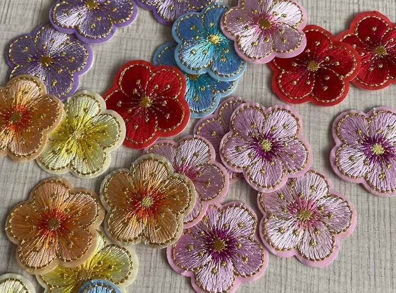 Нашивки с яркими цветами. Выполнена с помощью компьютерной вышивки. На заплатке уже нанесен термоклей.