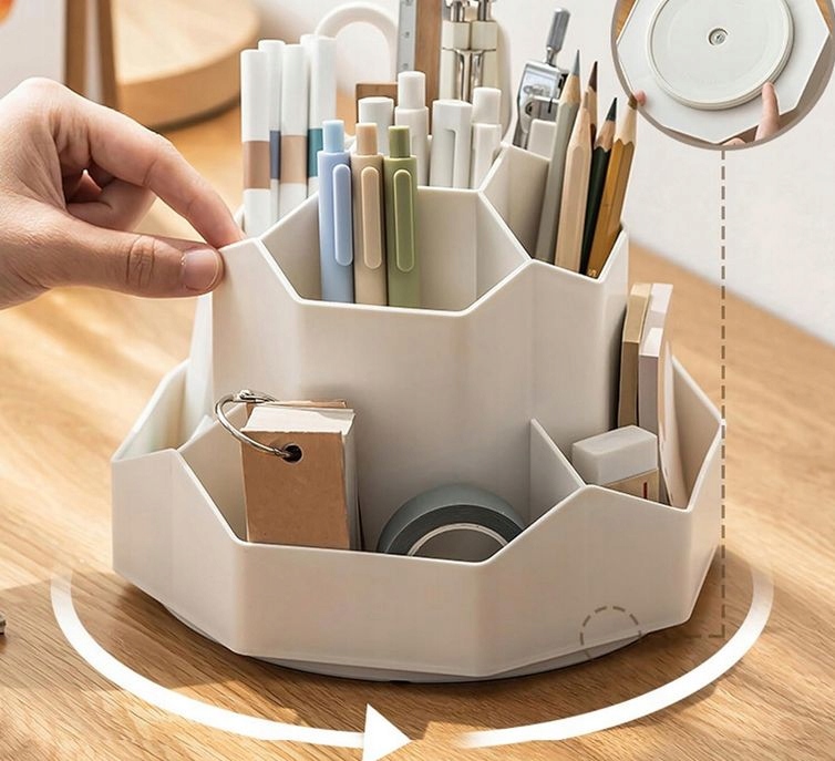Беспорядок на столе — кошмар каждого, кто хочет работать эффективно. Постоянный поиск необходимых вам письменных принадлежностей отнимает драгоценное время и снижает вашу производительность. Вращающийся держатель ручки – это решение, которого вы так долго ждали!
