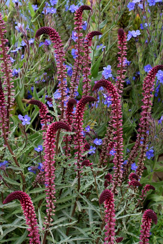 Многолетний рост до 50 см. У него зеленые листья и бордовые стебли. Он цветет темно -фиолетовыми цветами, которые сосредоточены на кластерах. Цветение с июня по август. Ему нравятся солнечные и полусущественные позиции. Он быстро растет. Это морозно -резистентное и длинное растение. Это хорошо выглядит на скидках. Подходит для посадки в натуралистических и закрытых садах. Упаковка содержит 10 семян.