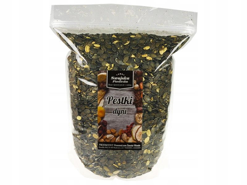 Семена тыквы, темно-зеленые - Вкусные семена тыквы из польских культур. Они подходят как дополнение к домашней выпечке, салатам и салатам. Их можно поджарить и съесть как закуску самостоятельно. Семена тыквы содержат ценное масло, которое можно отжимать и добавлять в блюда, а выжимки (обезжиренные) можно измельчать в муку из семян тыквы, которую можно использовать для загущения супов или соусов.