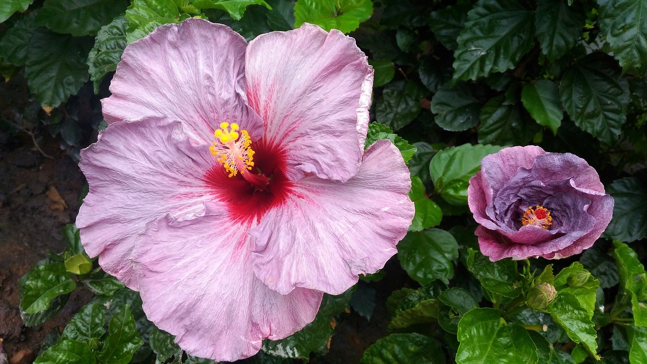 Окраска цветков садового гибискуса очень разнообразна, они могут быть белыми, желтыми, оранжевыми, розовыми, сиреневыми, фиолетовыми, синими. в различных оттенках и конфигурациях. Цветки могут быть одиночными, полумахровыми и махровыми. Они появляются с июня по октябрь. Осенью листья приобретают красивый желтый цвет.