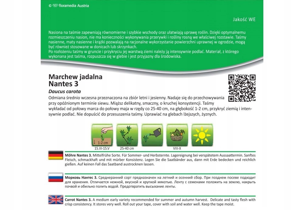 Просматривая «Семена на морковной ленте ОЧЕНЬ РАННИЕ.», вы можете быть уверены, что данный товар из каталога «Овощи» будет доставлен из Польши и проверен на целостность. В цене товара, указанной на сайте, учтена доставка из Польши. Внимание!!! Товары для Евросоюза, согласно законодательству стран Евросоюза, могут отличаться упаковкой или наполнением.