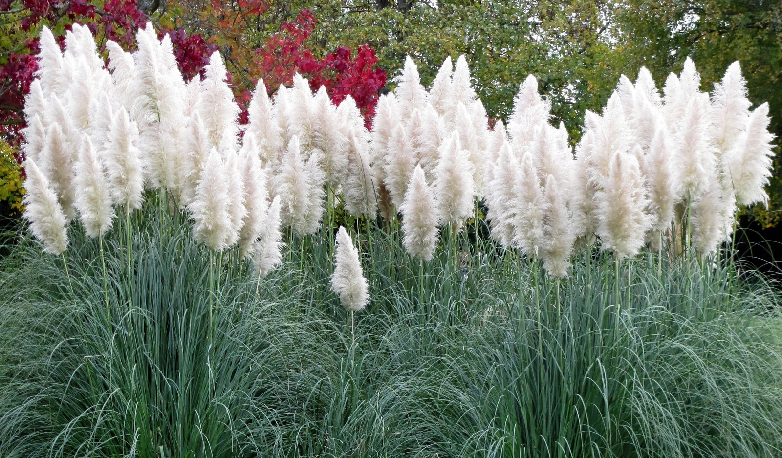 Трава пампаса – самая впечатляющая и декоративная из всех трав. Достигает до 2-3 метров в высоту. Осенью из раскидистой розетки листьев ровной формы вырастают впечатляющие 50-сантиметровые метелки, долго сохраняющие декоративную ценность после высыхания. Цветы очень долговечны и легко сохраняются даже после отцветания до поздней осени, а в хорошую погоду они украшают наши сады даже зимой. Нетребовательное растение хорошо растет как на солнечных, так и в полутенистых местах, любит влажную почву. Это многолетний вид, совершенно морозоустойчивый в нашем климате.