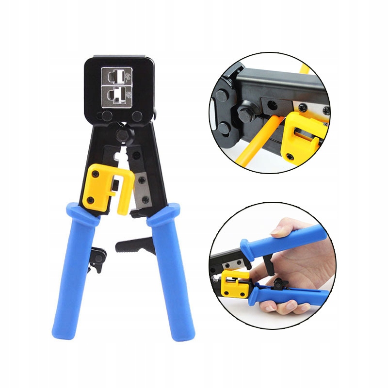 Устройство с двойными захватами будет использоваться для обжима всех типов разъемов RJ-11, RJ-12 и RJ-45 + проходных. RJ45
