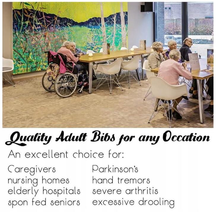 Новый и модный нагрудник: устойчив к загрязнениям, хорошо скрывает пятна от еды и напитков и сохраняет одежду в чистоте. Кроме того, нагрудники для взрослых очень забавные и демонстрируют ваш юмор, благодаря чему те, кому нужна помощь, почувствуют себя расслабленно и достойно.