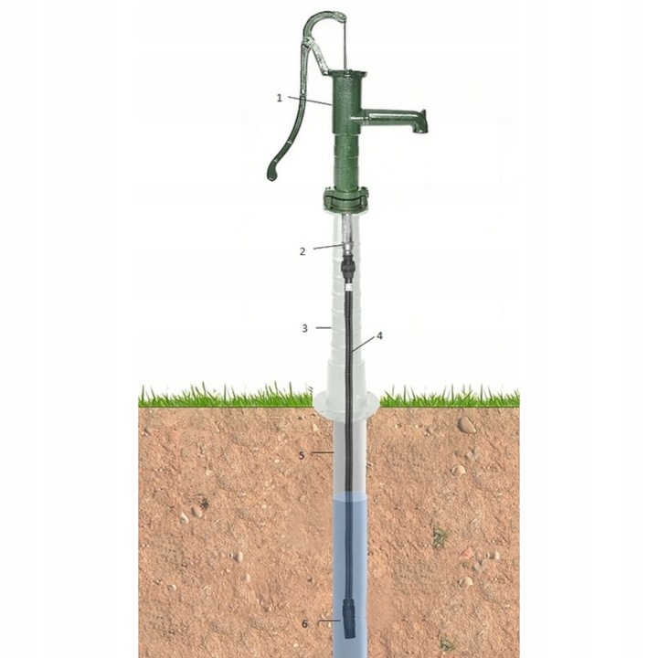 - Накачивая воду с помощью рукоятки и прикрепленного к ней рычага, приводим в движение поршень, который всасывает воду из колодца. Специальный байонетный клапан блокирует возврат перекачиваемой воды обратно в скважину.