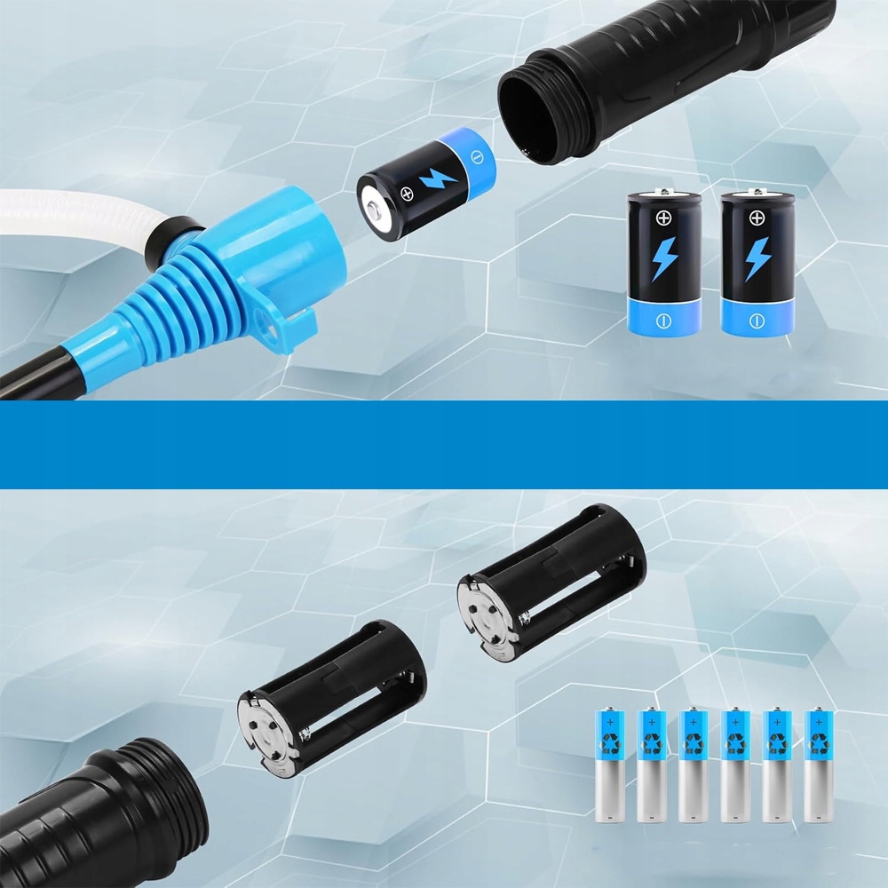 После установки 6 батареек типа АА или 2 батареек D (примечание: требуются батарейки – не входят в комплект), просто нажмите кнопку, чтобы запустить сифонный насос! Управляйте насосом одной рукой или полностью без помощи рук, без необходимости поднимать тяжести!