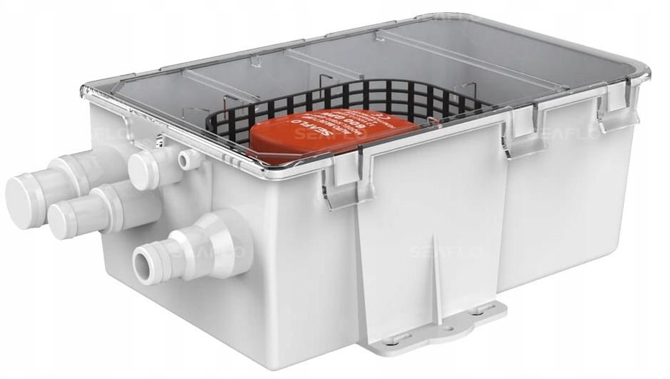 Seaflo SFBP1-G750-07 — это отстойник для откачки сточных вод, который позволяет собирать воду из трех разных источников, например, из душа и двух умывальников. Поступающая в колодец вода отводится наружу благодаря встроенному трюмному насосу производительностью 48 литров в минуту, который включается автоматически при появлении воды в колодце и отключается после откачки лишней воды. Насос оснащен обратным клапаном, который предотвращает попадание воды обратно в поддон. Внутри поддона также имеется специальная сетка, защищающая насос от крупных загрязнений. Открутив верхнюю крышку, решетку можно почистить и установить на место. Лоз изготовлен из прочного АБС-пластика, прост в установке и использовании. Используется на яхтах, в кемперах и караванах.