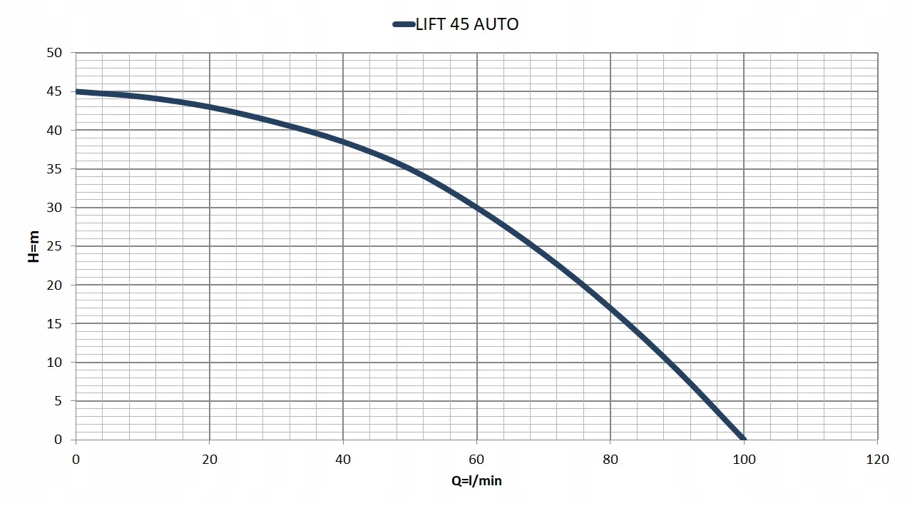 Погружной насос LIFT 45 AUTO — это интеллектуальный насос, не требующий дополнительного оборудования (например, реле давления), поскольку он оснащен встроенной автоматикой, управляющей работой насоса