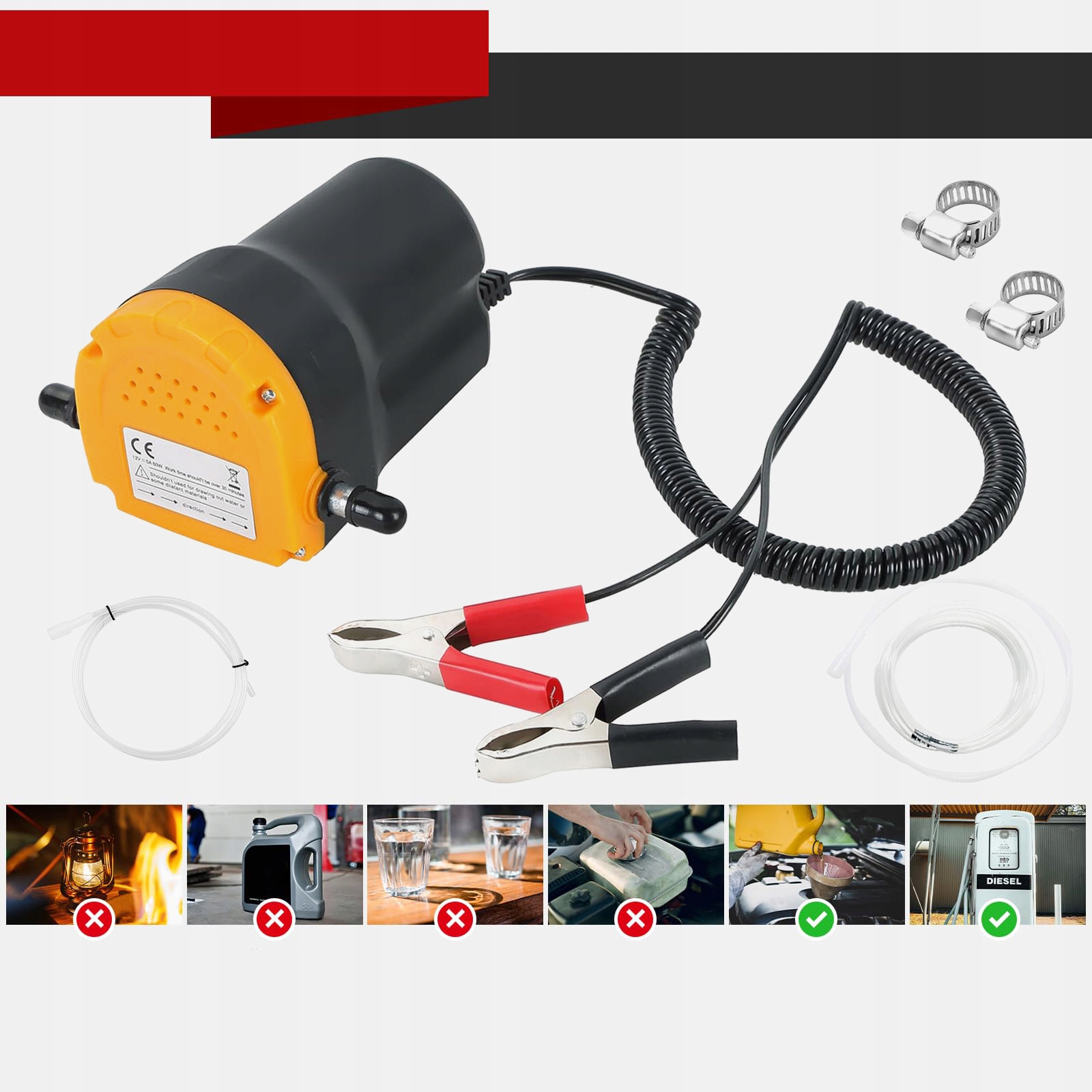 3. Безопасное и простое в использовании - За исключением моторного масла и дизельного топлива, масляный насос не может сосать легковоспламеняющиеся жидкости или воды, чтобы избежать несчастных случаев. Перед использованием нагрейте автомобильный двигатель до температуры 40-60 ° C (104-140 ° F) в течение примерно 15 минут, чтобы предотвратить масло для предотвращения масла и блокировки масляного насоса.