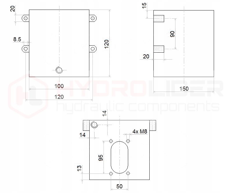 Из насоса выходят два масляных патрубка (на фото два красных колпачка), позволяющие подключить привод двойного действия. Насос прекрасно работает со всеми двусторонними приводами Hydrolider из нашего предложения.