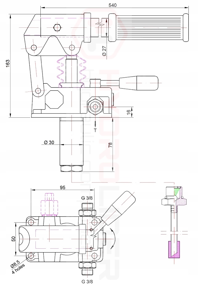- Масло перекачивается постоянно при перемещении рычага вверх и вниз.