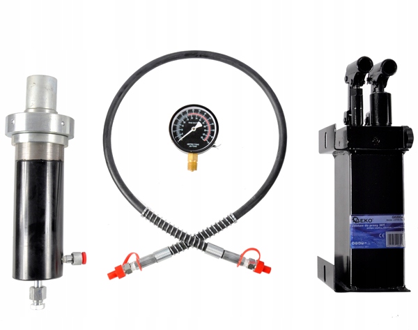 Комплект для пресса 30Т, состоящий из привода, двухступенчатого насоса, позволяющего точно дозировать усилие, манометра с градуировкой в тоннах и гидравлического кабеля длиной около 1500 мм.