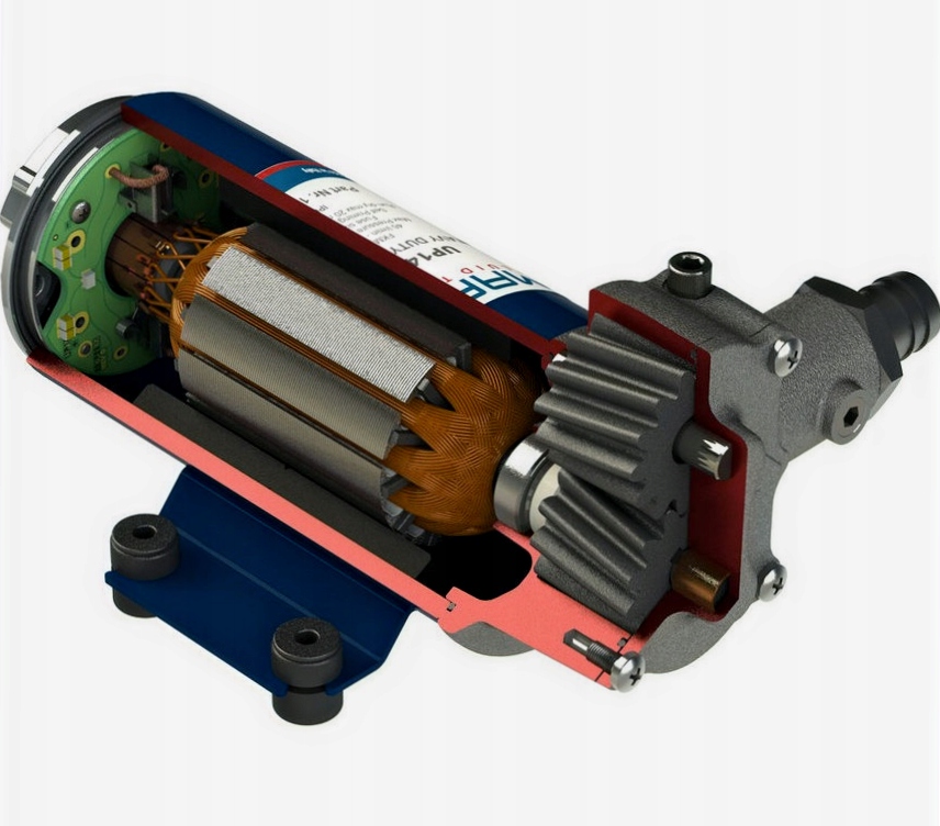 - Практичный самовсасывающий небольшой электрический насос с двигателем на 12 В. Производительность 10 л/мин, самовсасывающий 1,5 м, давление 1,5 бар, вес нетто 1,2 кг, всасывающий и напорный патрубок 12 мм. Корпус изготовлен из цельного латунного литья, шестерни – из полимера, вал насоса – из высококачественной нержавеющей стали. Держатель щеток установлен внутри водонепроницаемого чехла, а кабельный ввод также водонепроницаем. Уплотнения изготовлены из FKM и уплотнительное кольцо из NBR.