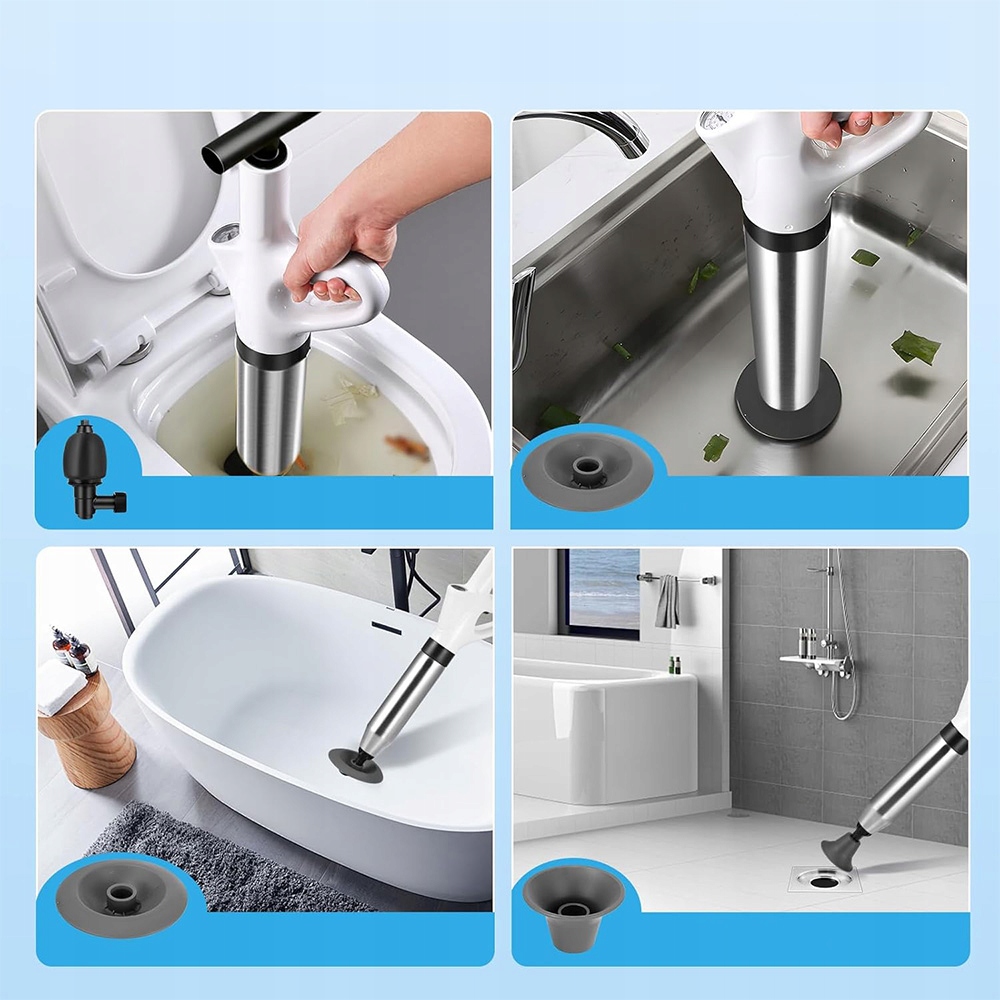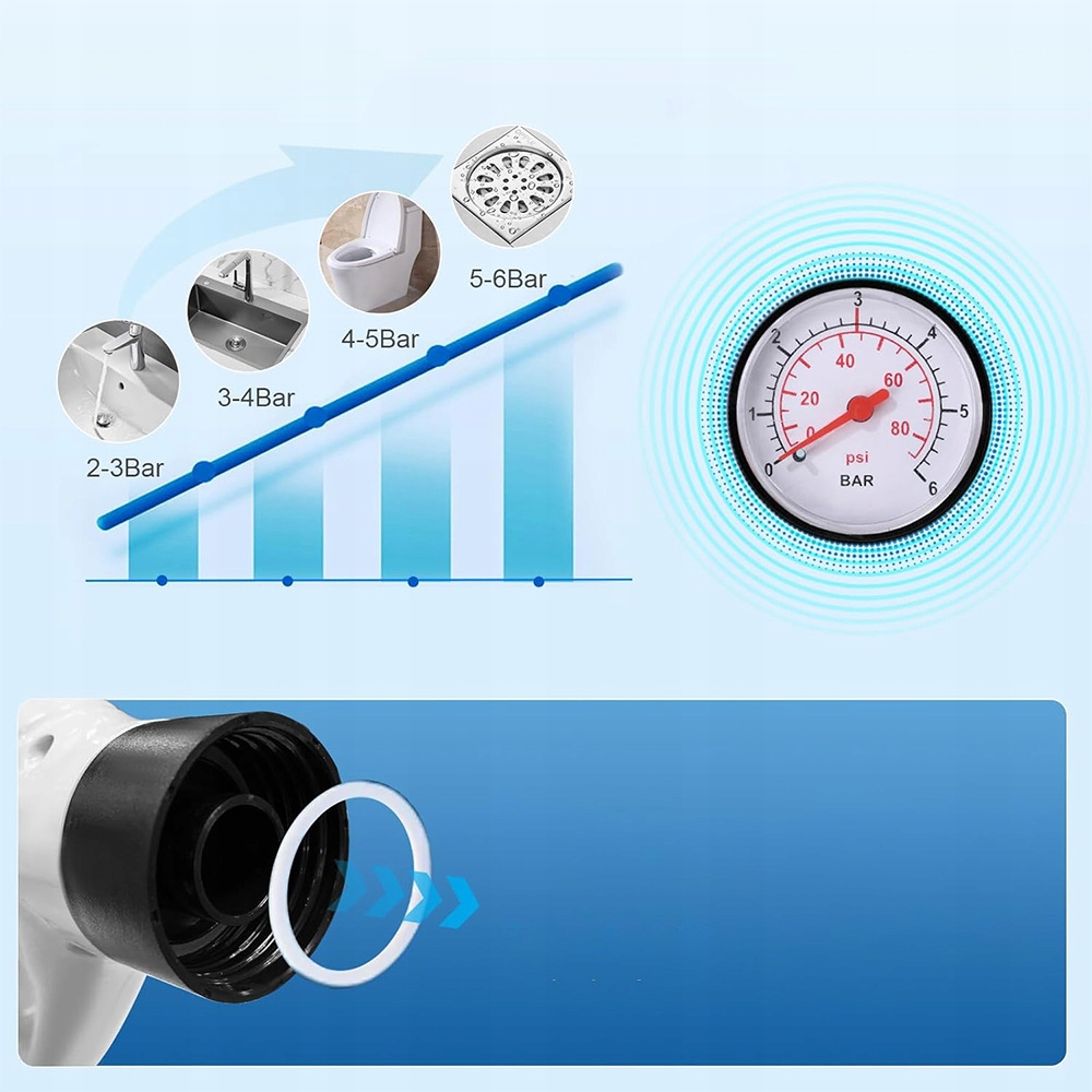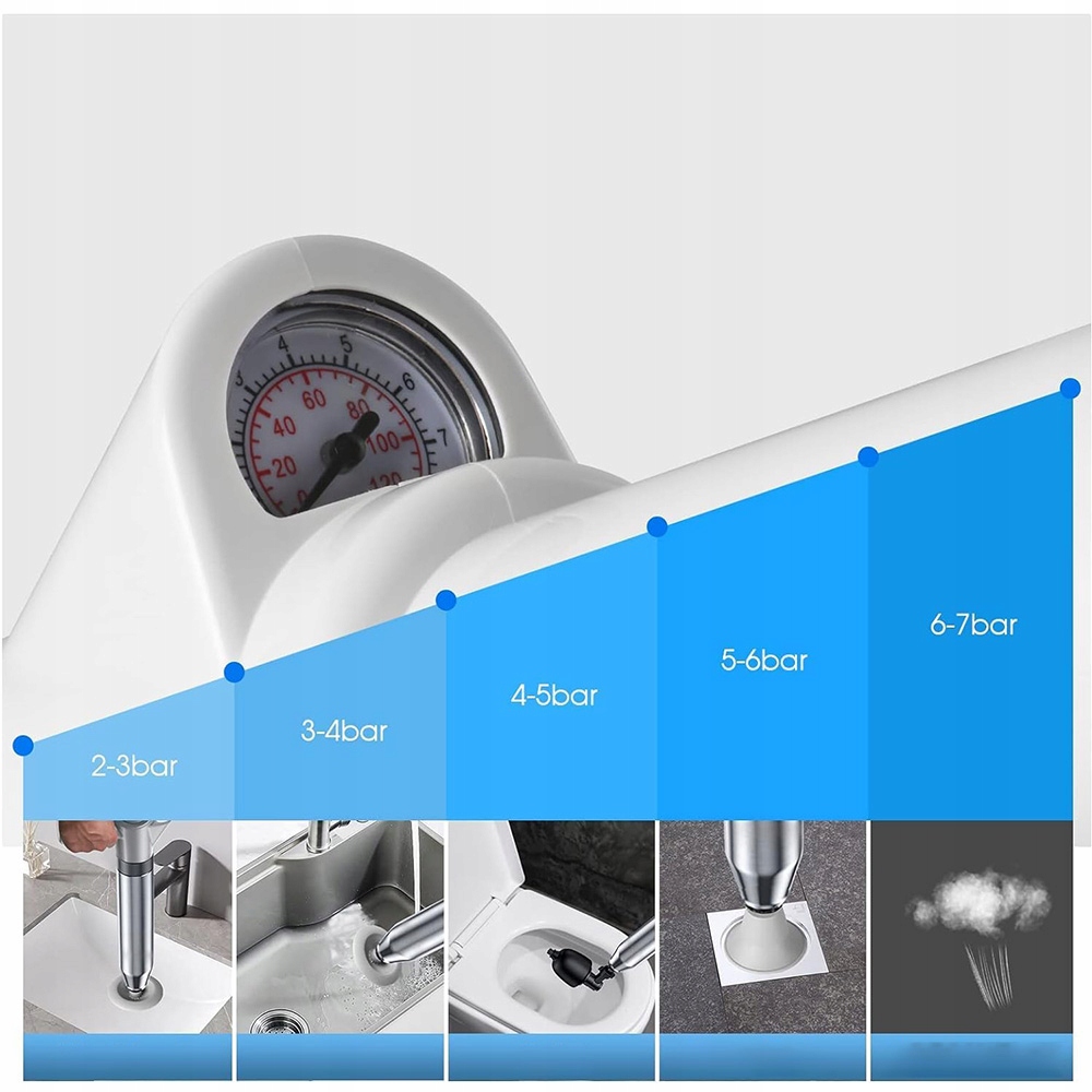 🚽🚽 У вас есть чистящий агент. Прикрепленный манометр облегчает проверку и регулировку давления воздуха в зависимости от потребностей очистки оттоков, избегая беспорядка и чрезмерного давления.