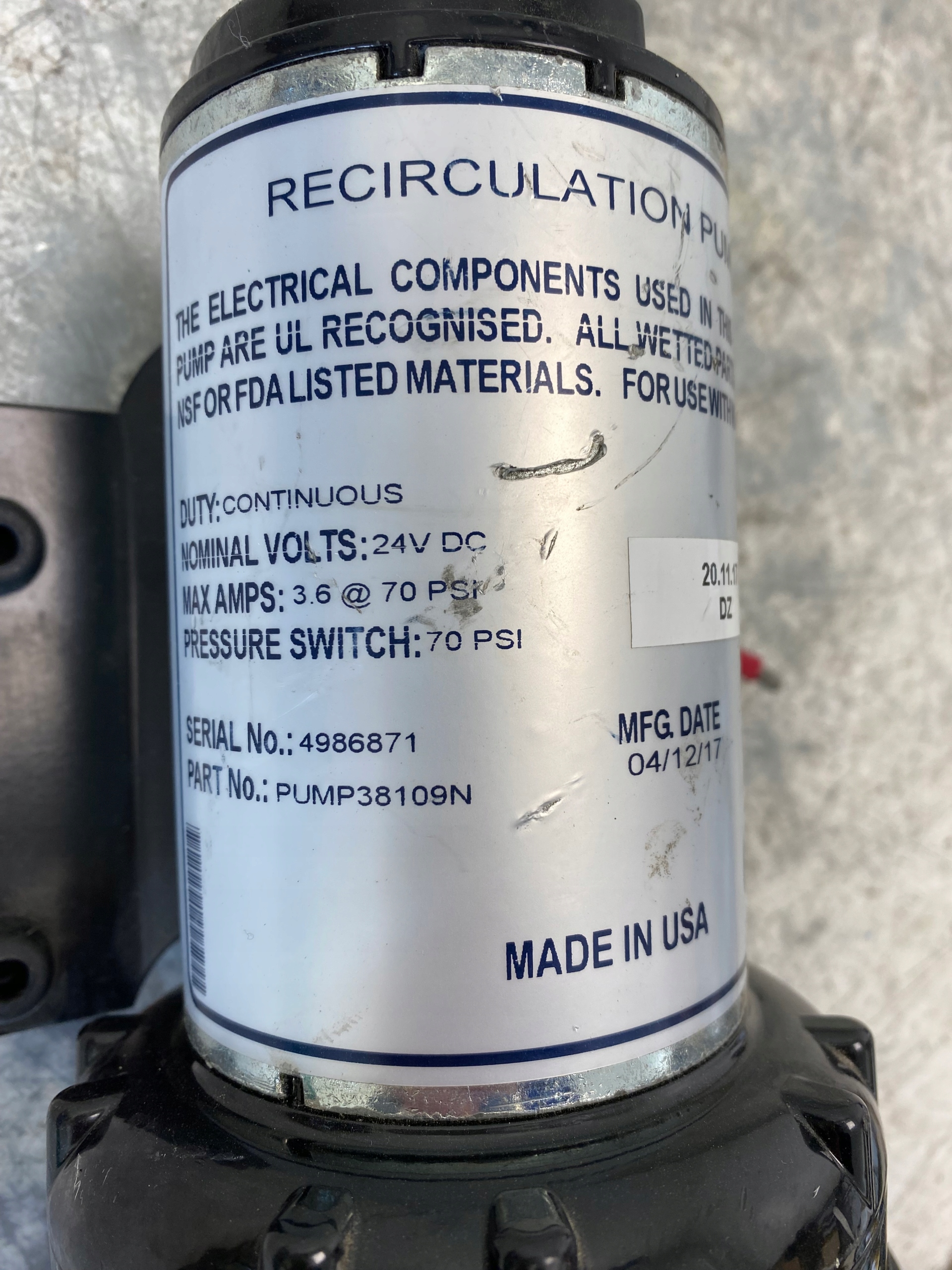 Рециркуляционный насос циркуляции Elga 24V 70PSI 38109