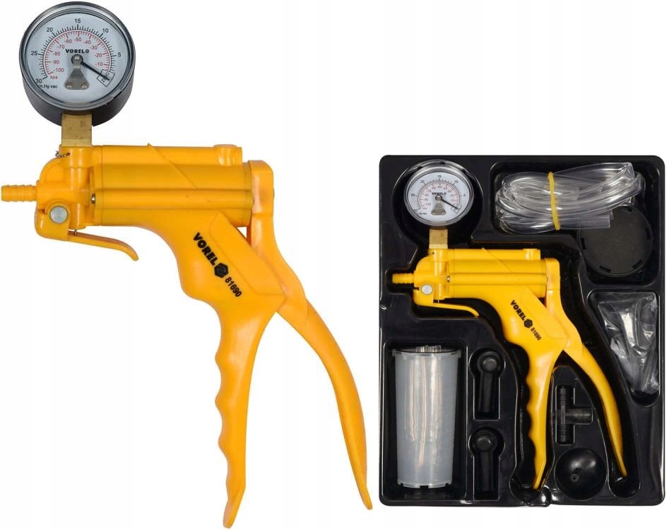 Ручной вакуумный насос, позволяющий создавать отрицательное давление -1 бар. В наборе 16 элементов.