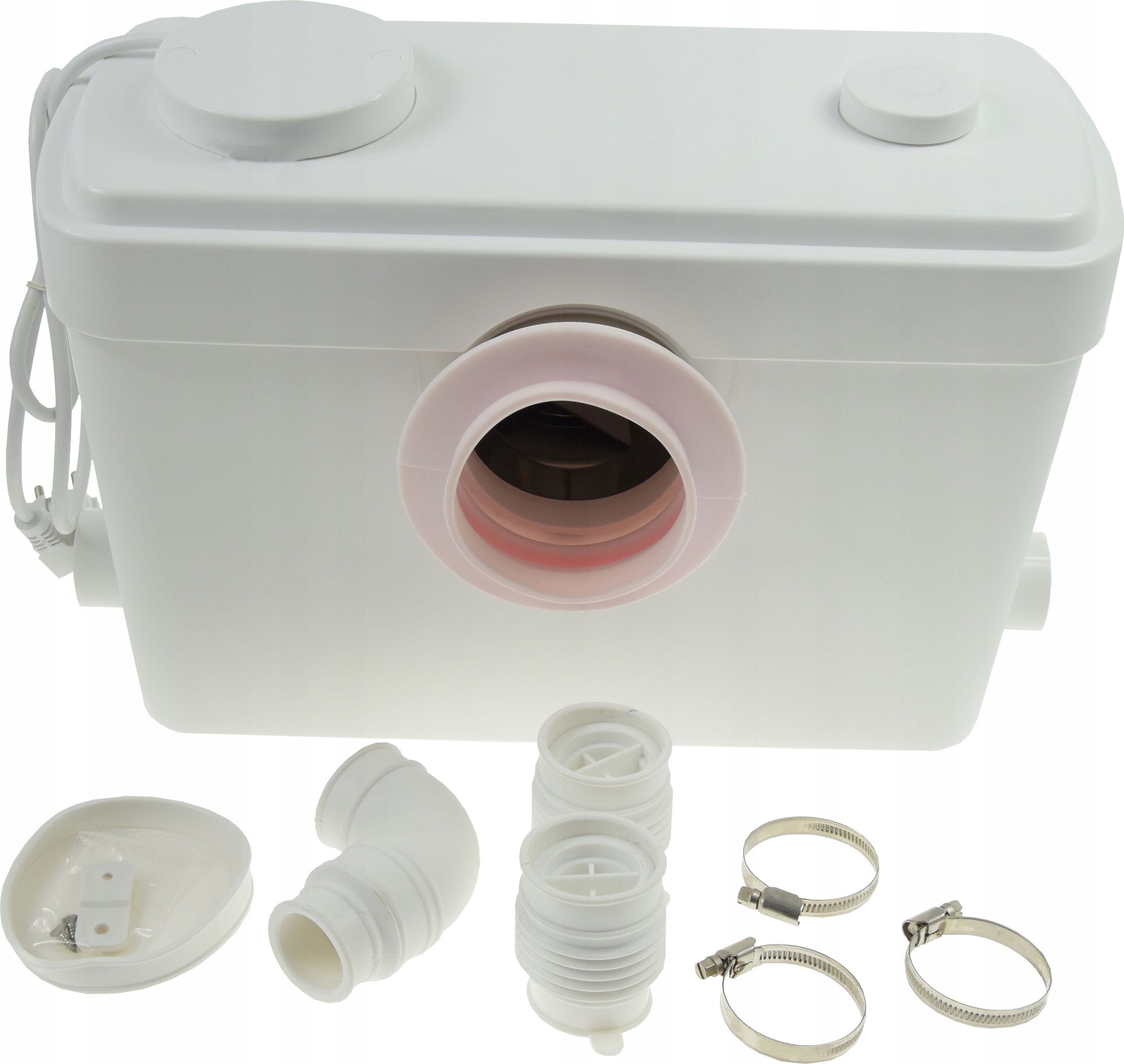 Оснащен измельчителем, благодаря которому туалетную бумагу и фекалии можно перекачивать по трубам сечением до32мм.