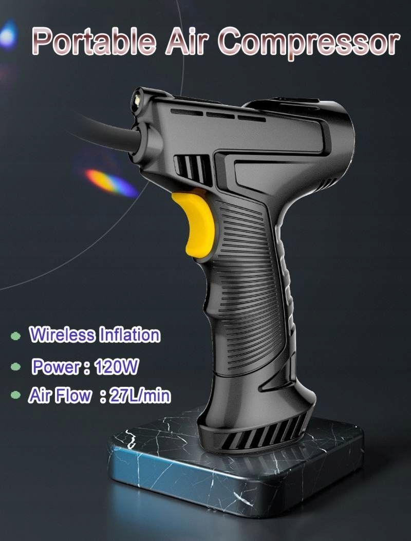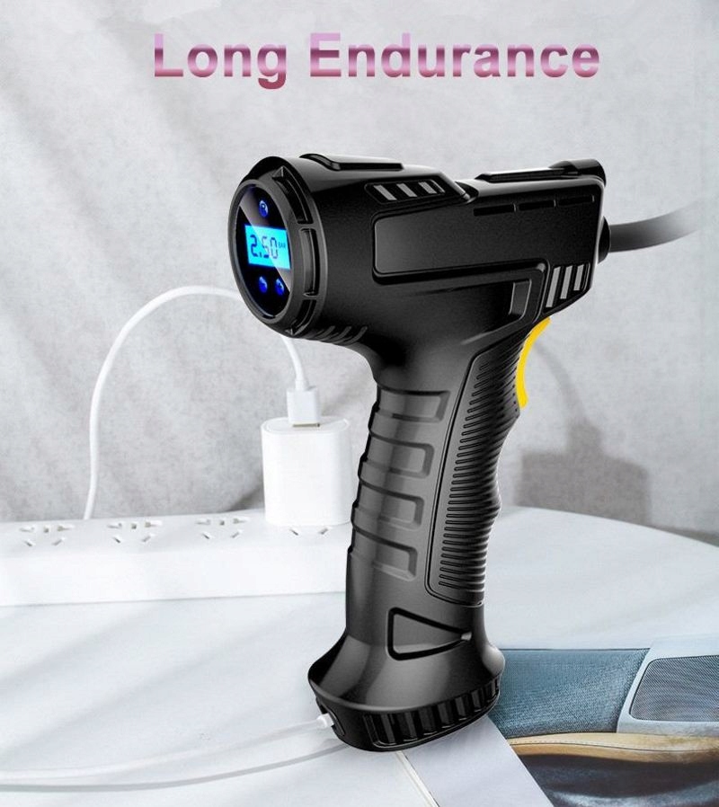 Велосипедный и автомобильный насос Автоматический перезаряжаемый БЕСПРОВОДНОЙ компрессор, заряжаемый через USB. Насос автоматически отключится после достижения предела давления, ранее установленного в устройстве.