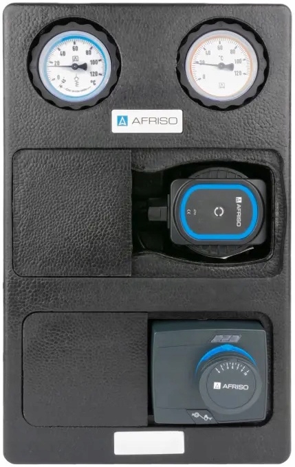 - Установлены смесительный клапан ARV Kvs12, насос AFRISO APH 25-7/180 и привод ARM 343 ProClick (3-точечный, 230 В, 120 В). s).